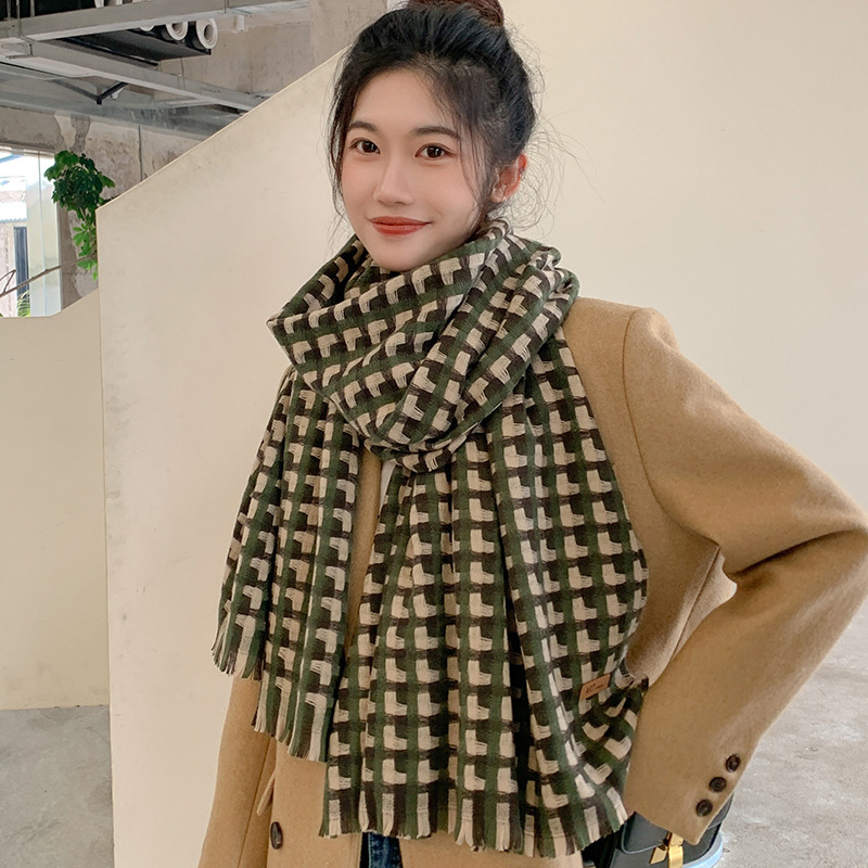 새로운 일본과 한국 스타일 컬러 블록 격자 무늬 스카프 모조 캐시미어 짧은 수염 스카프 여성용 겨울 숄 학생용 이중 목적 따뜻한 목