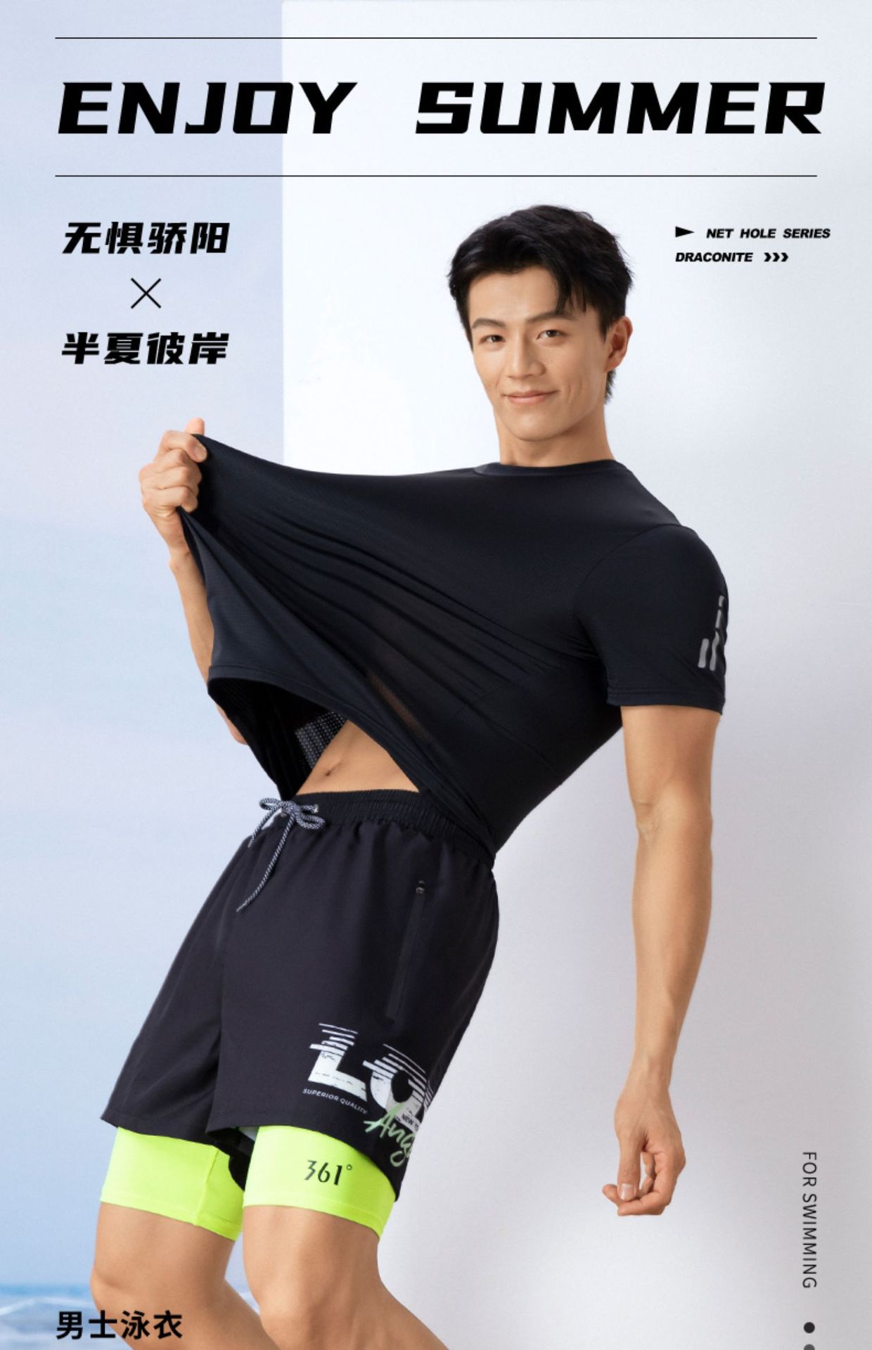 361 수영복 남성 최고 남성 느슨한 방황 소년 및 청소년을위한 빠른 건조 수영 세트 트렁크 수영