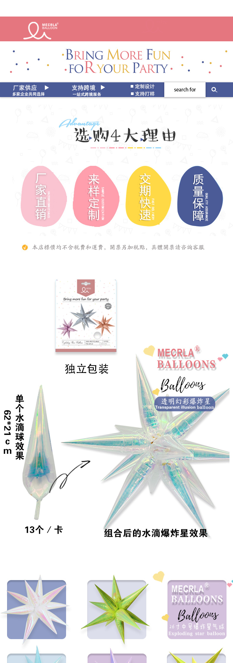 • (카드) 26 인치 폭발성 별 다채로운 투명