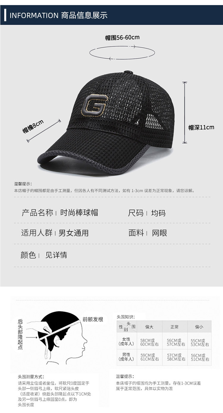 수 놓은 편지 큰 G 두꺼운 메쉬 야구 모자 쉐이크 톤 폭발 차양 자외선 차단제 캐주얼 패션 커플 같은스토어 가기