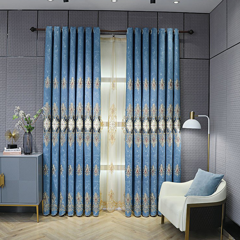 크로스-보더 재고 완성 된 유럽식 두꺼운 셔닐 실 수 놓은 커튼 패브릭 침실 거실 정전 커튼 블루스토어 가기