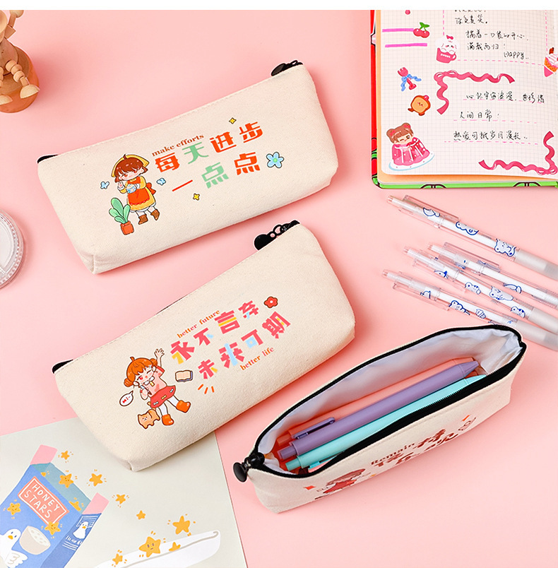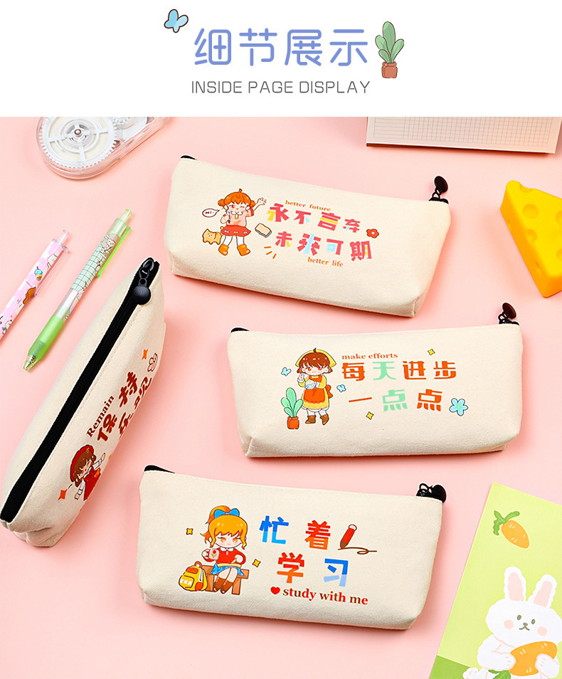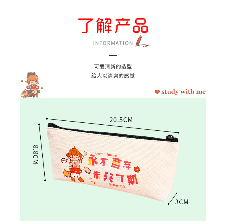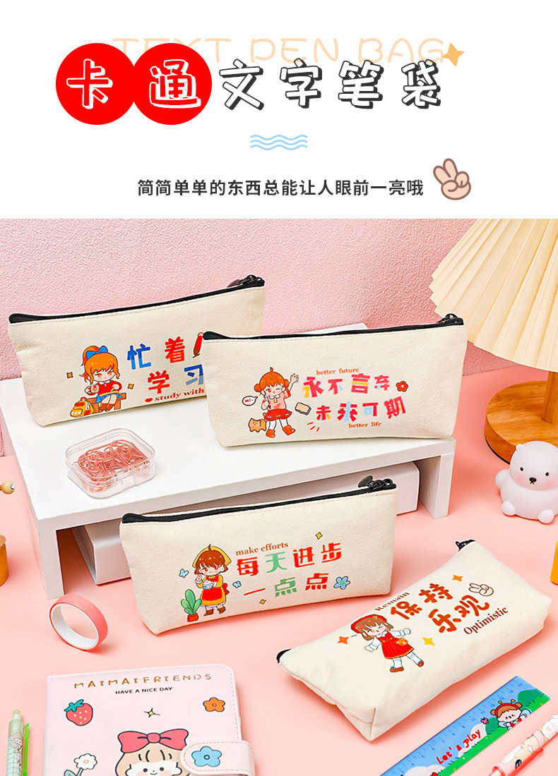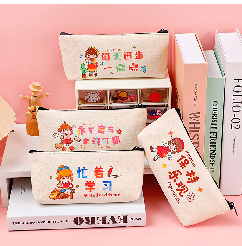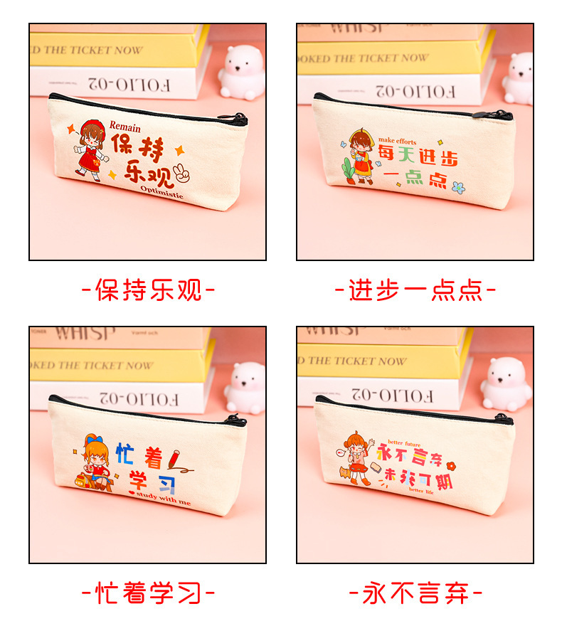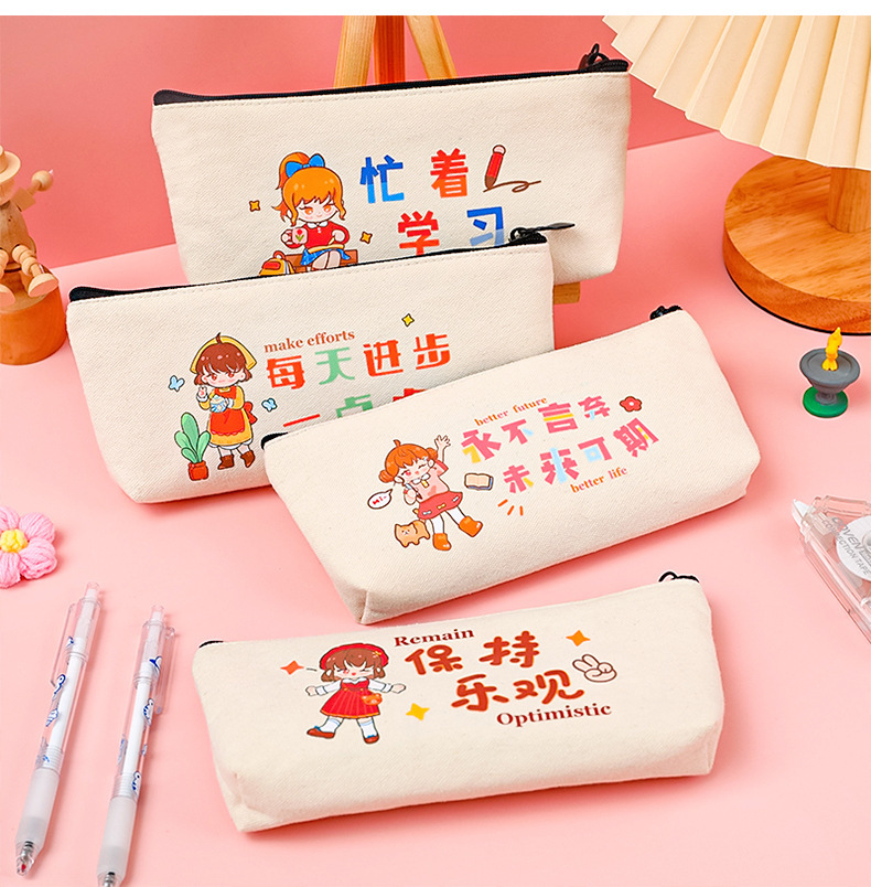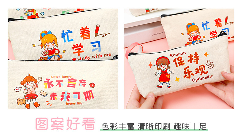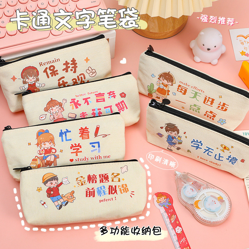 학생들은 학기 초에 연필 가방에 시험을 치르도록 권장됩니다. 만화 영감 캐릭터를위한 대용량 캔버스 문구 가방.