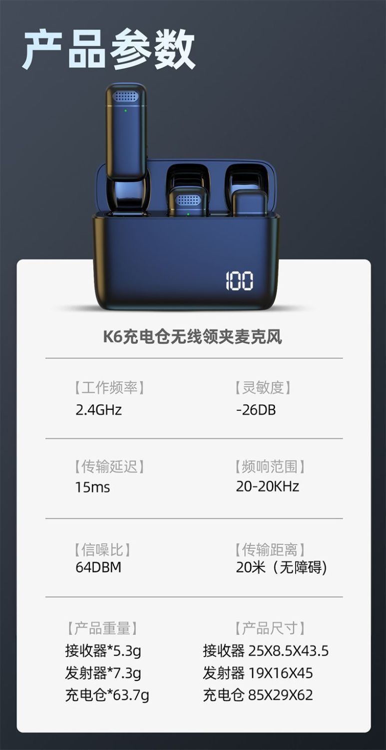 충전실 전원 디스플레이 대용량 휴대 전화 라이브 쇼트 비디오 노이즈 저감 기능이 있는 무선 마이크 칼라 클립 타입
