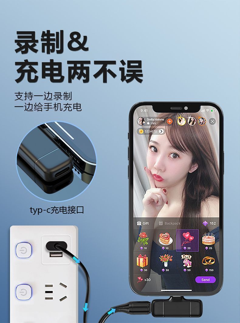 충전실 전원 디스플레이 대용량 휴대 전화 라이브 쇼트 비디오 노이즈 저감 기능이 있는 무선 마이크 칼라 클립 타입스토어 가기