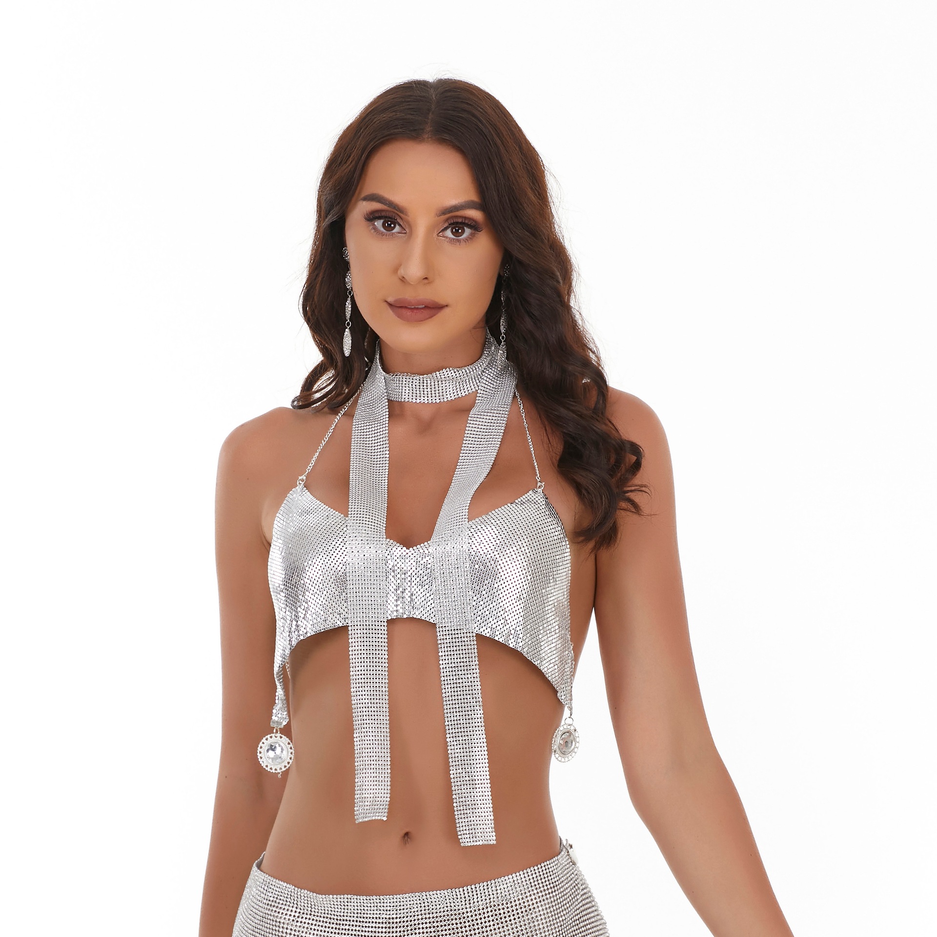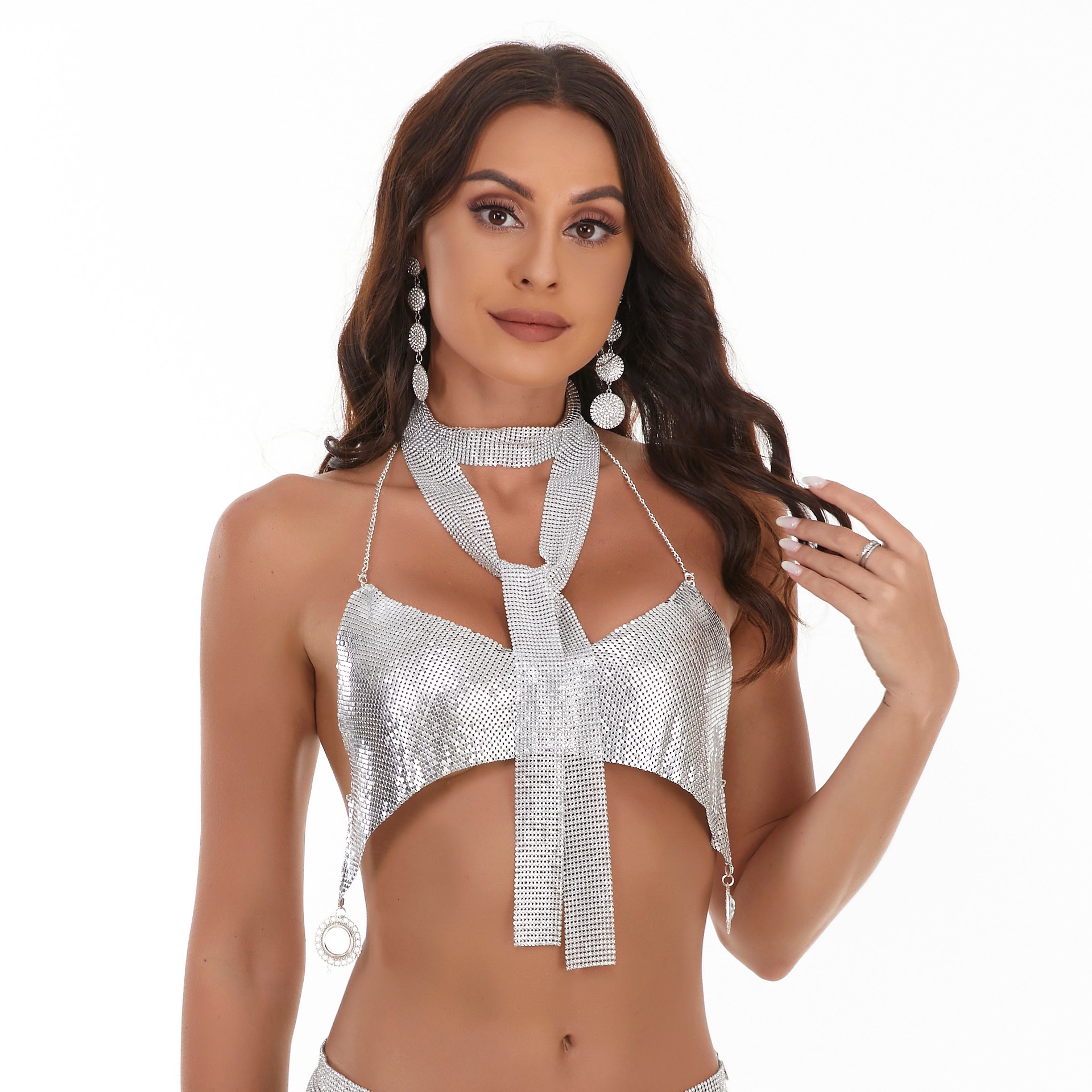 유럽과 미국 스팽글 섹시한 스파이스 슬링 여성용 비키니 등이없는 보석 민소매 탑 틈새 매력적인 유혹 속옷스토어 가기