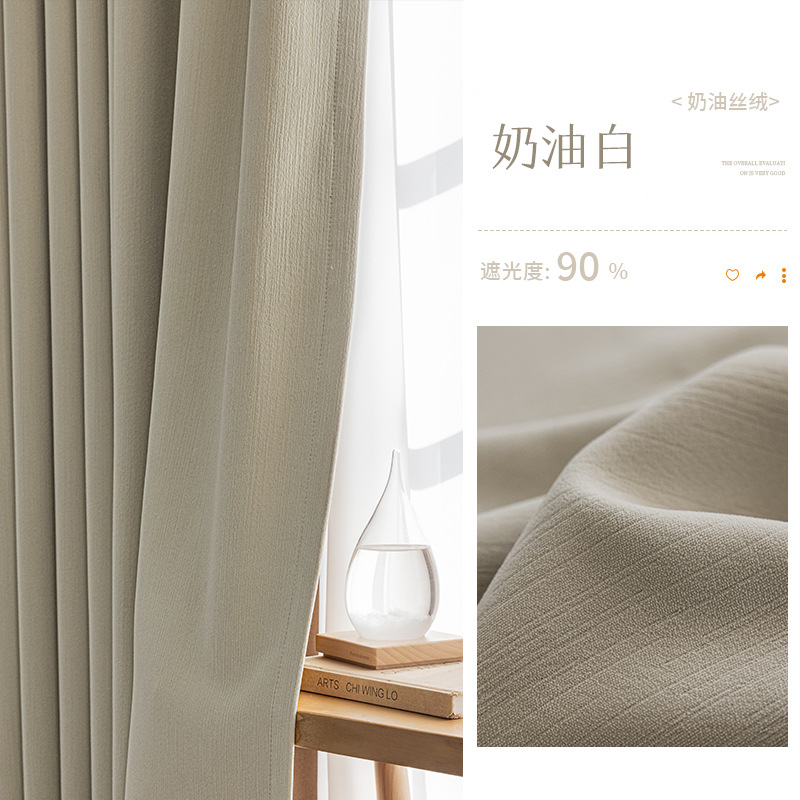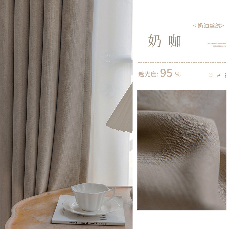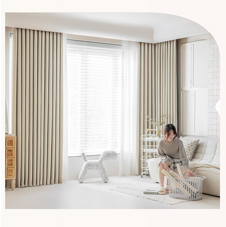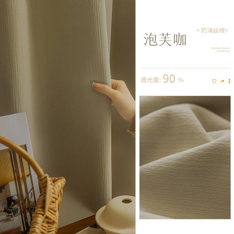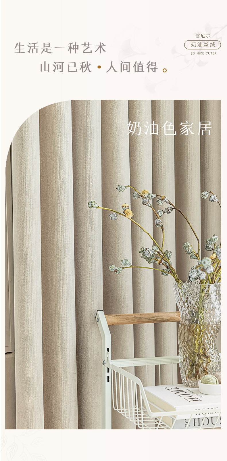 쉐닐 커튼 완제품 크림 벨벳 셰니어 모던 심플 완전 차광 자외선 차단 단열 밀크티 원단