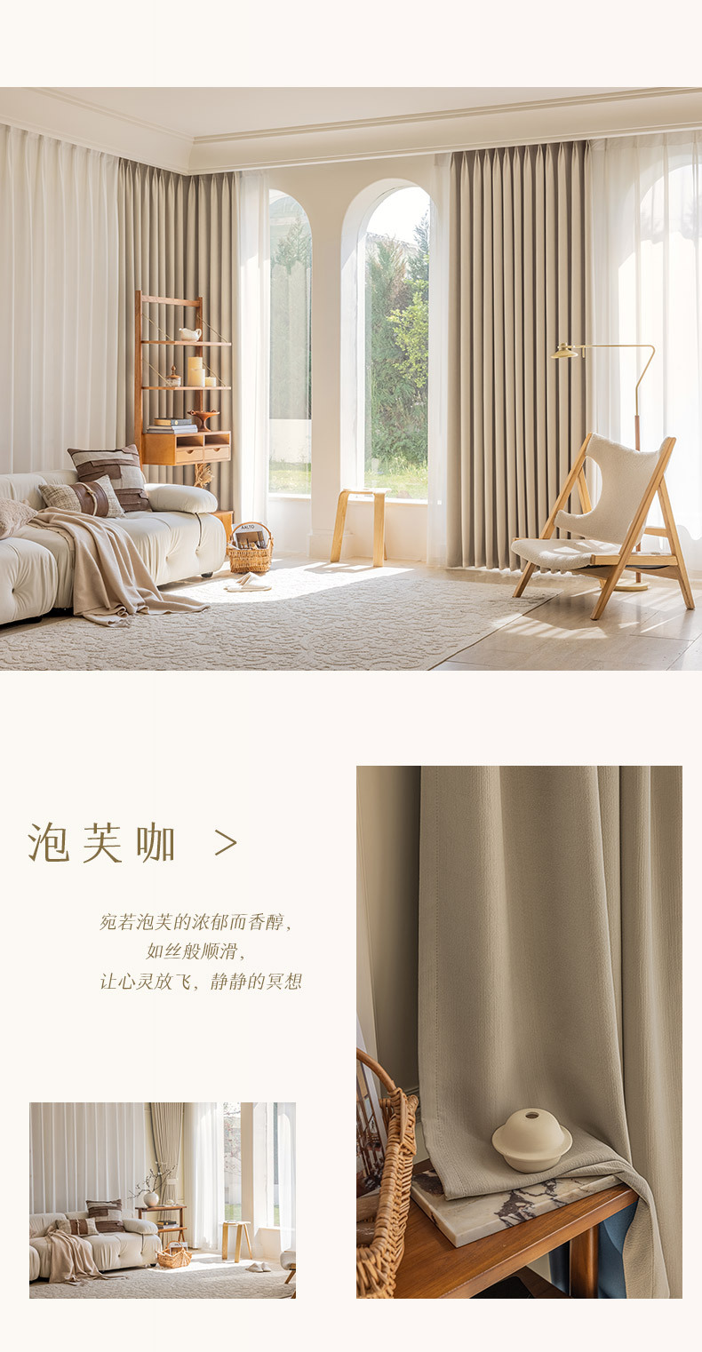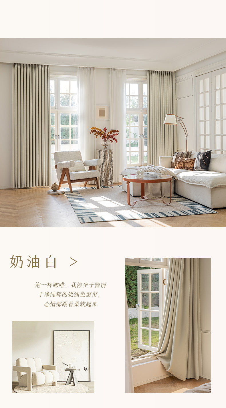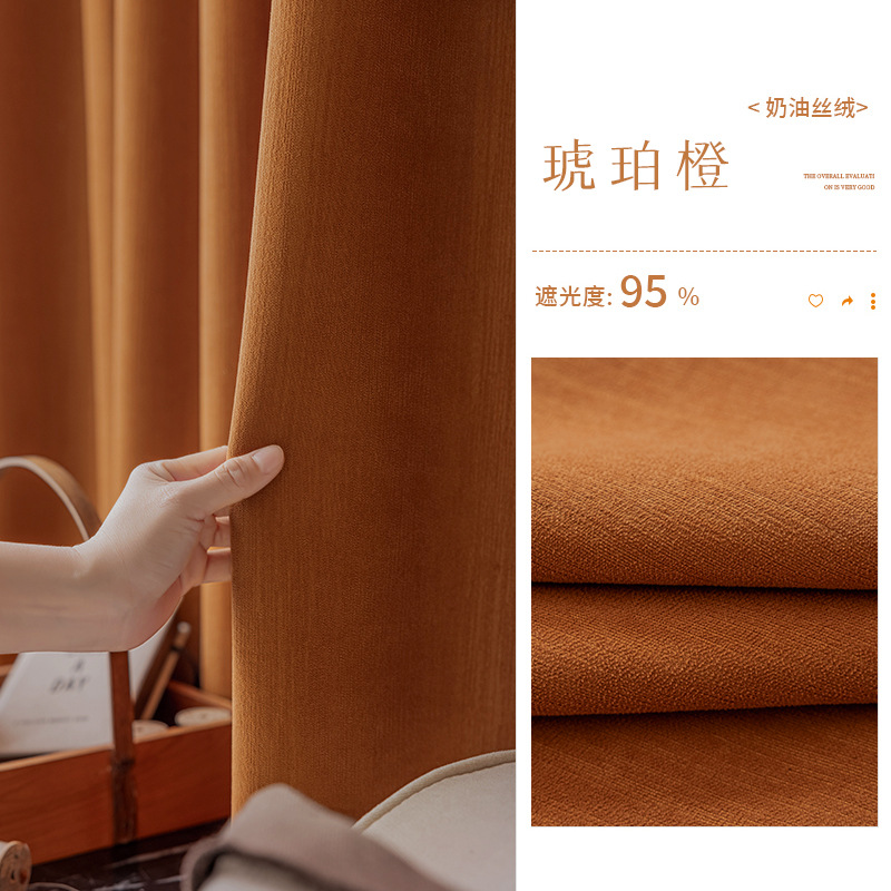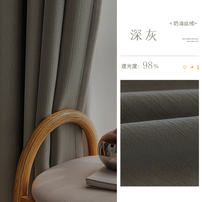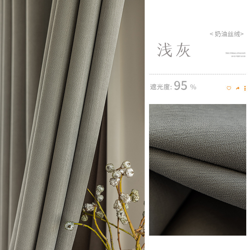 쉐닐 커튼 완제품 크림 벨벳 셰니어 모던 심플 완전 차광 자외선 차단 단열 밀크티 원단