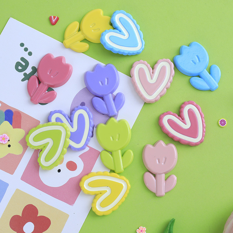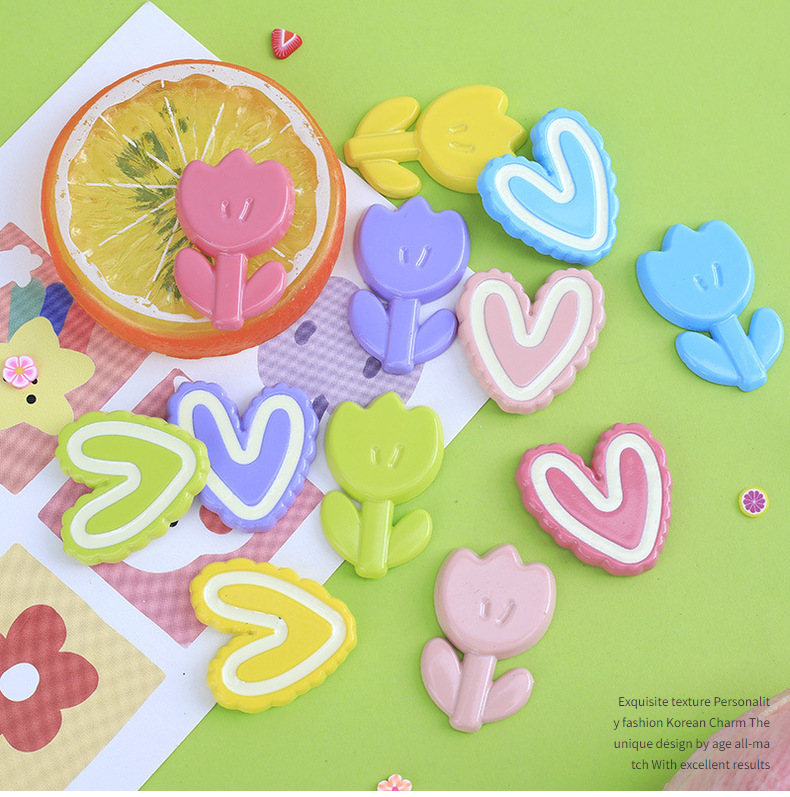 밝은 얼굴 사랑 튤립 DIY 만화 아크릴 액세서리 휴대 전화 케이스 문구 상자 보관 상자 머리핀 헤드 라인