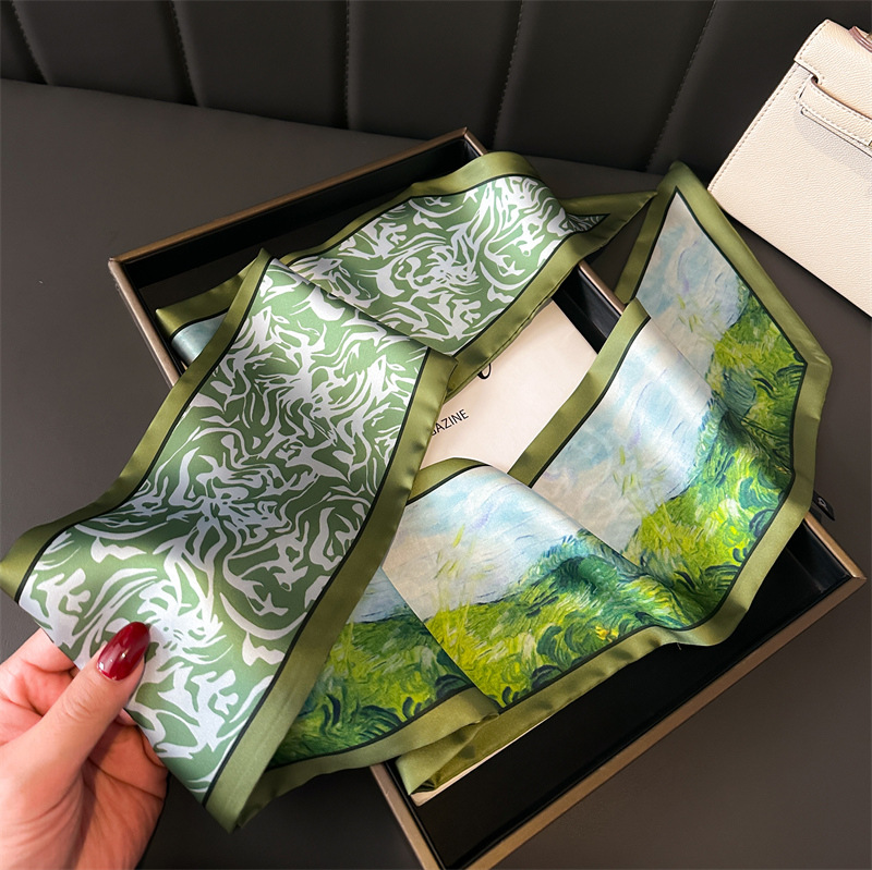 우아한 얇은 스카프 패션 여성의 머리 스카프 작은 실크 스카프 장식 봄과 가을 모든 일치 한국 얇은 좁은 리본 비스듬한 스카프