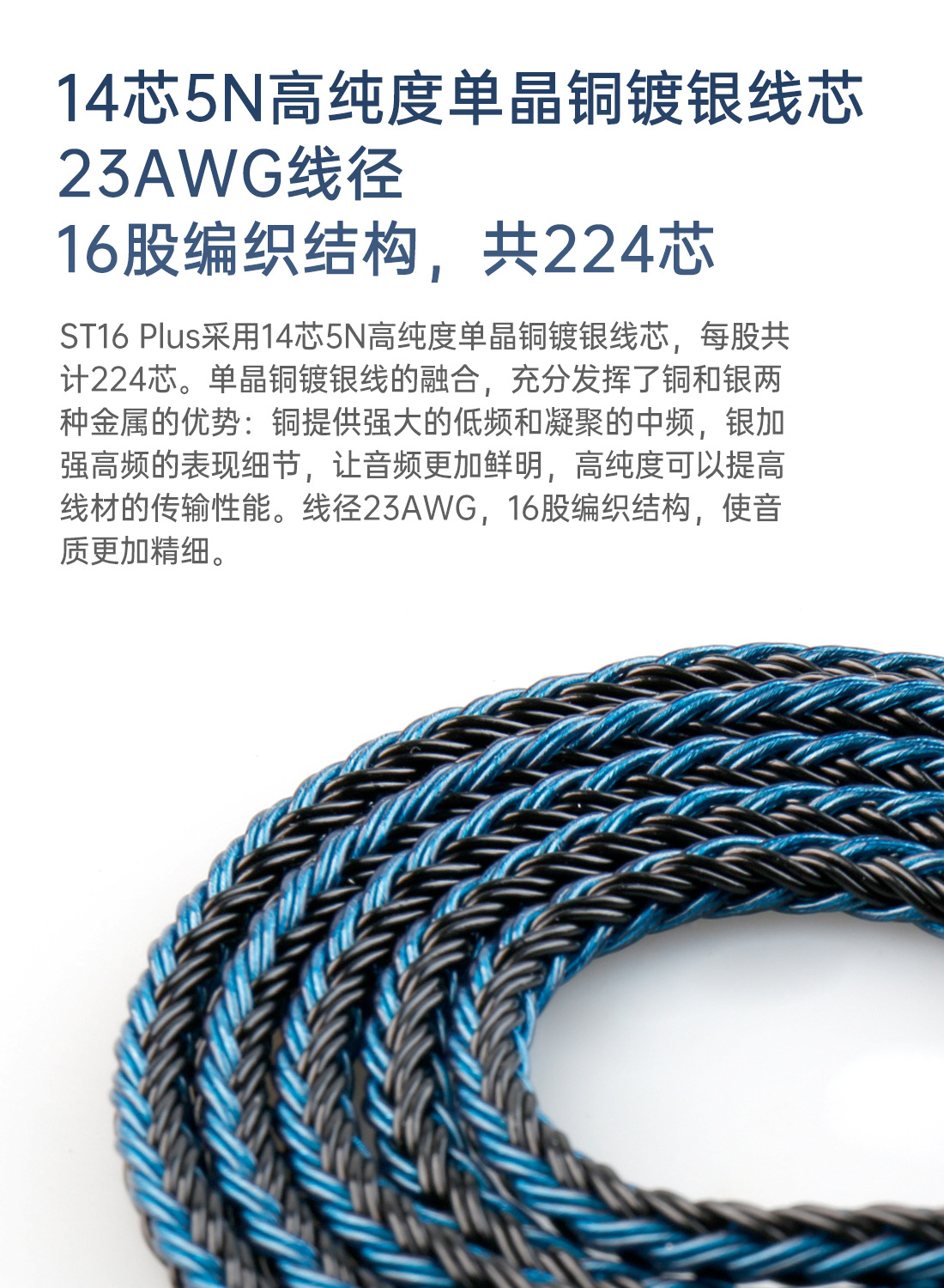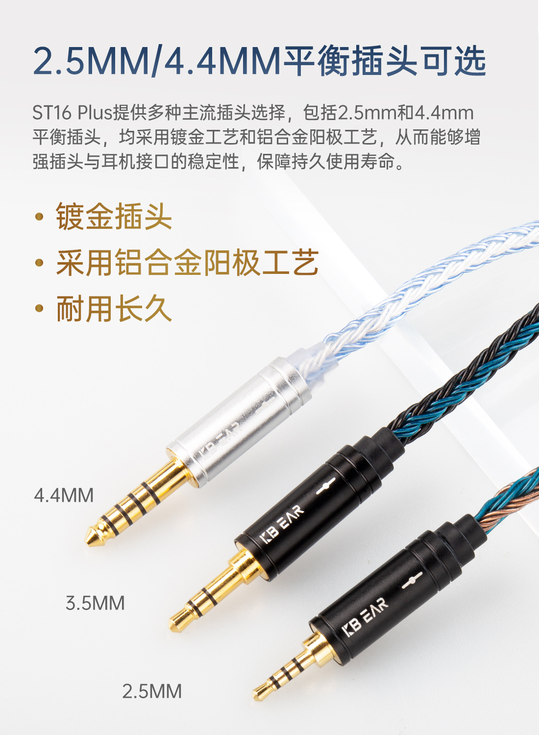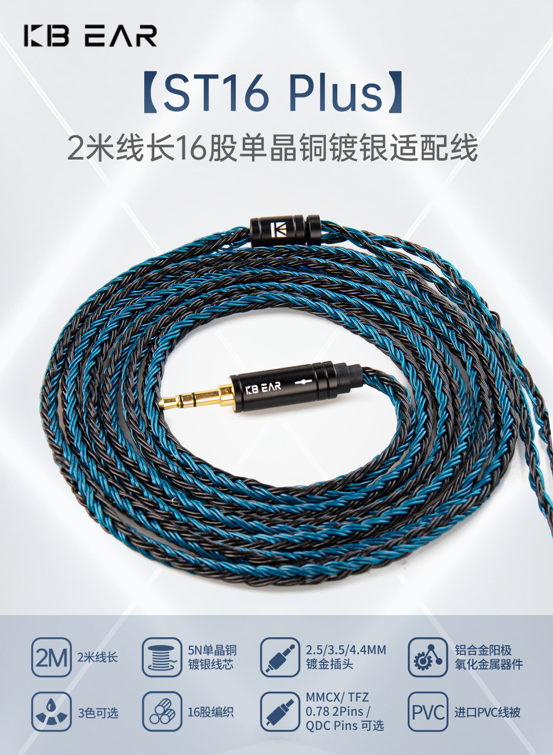 KBEAR Kuibao ST-16Plus 16 가닥 5N 단결정 구리 실버 도금 업그레이드 라인 밸런스 라인 2 미터 연장
