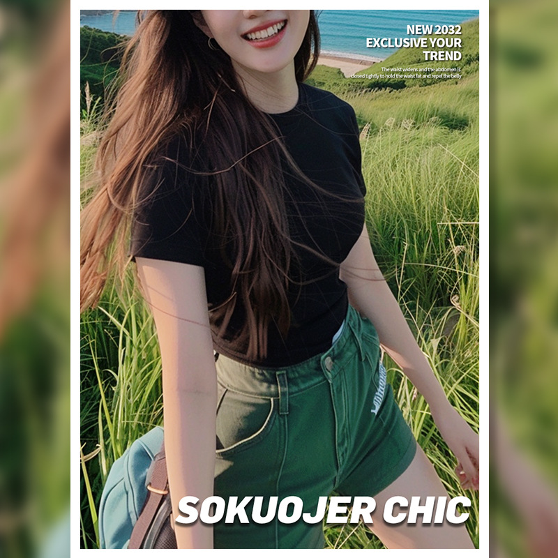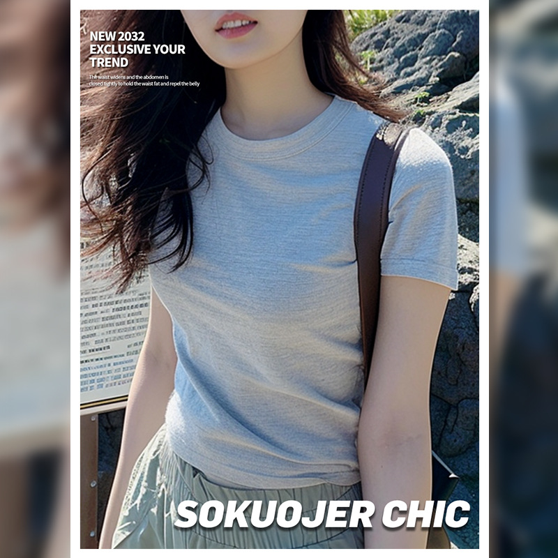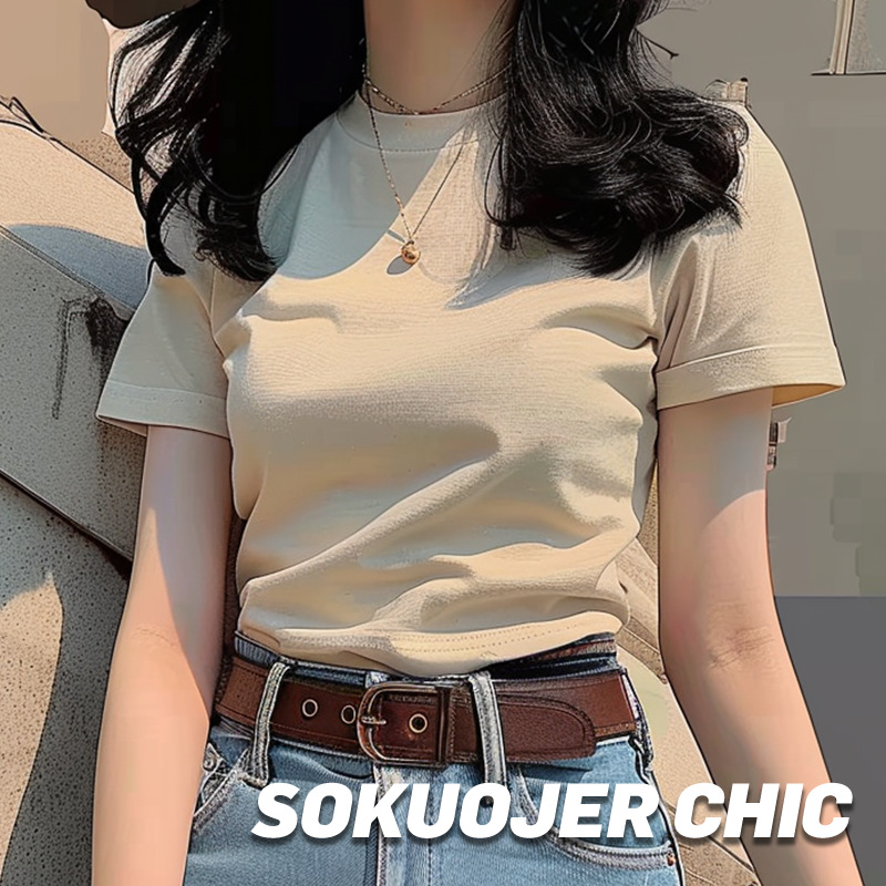 하이 퀄리티 미국 티셔츠 여성 여름 둥근 목 어깨 반 소매 면 스트레치 슬림 핏 블랙 짧은 소매베이스 탑스토어 가기