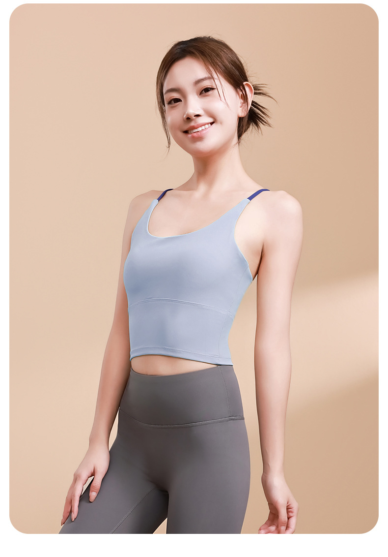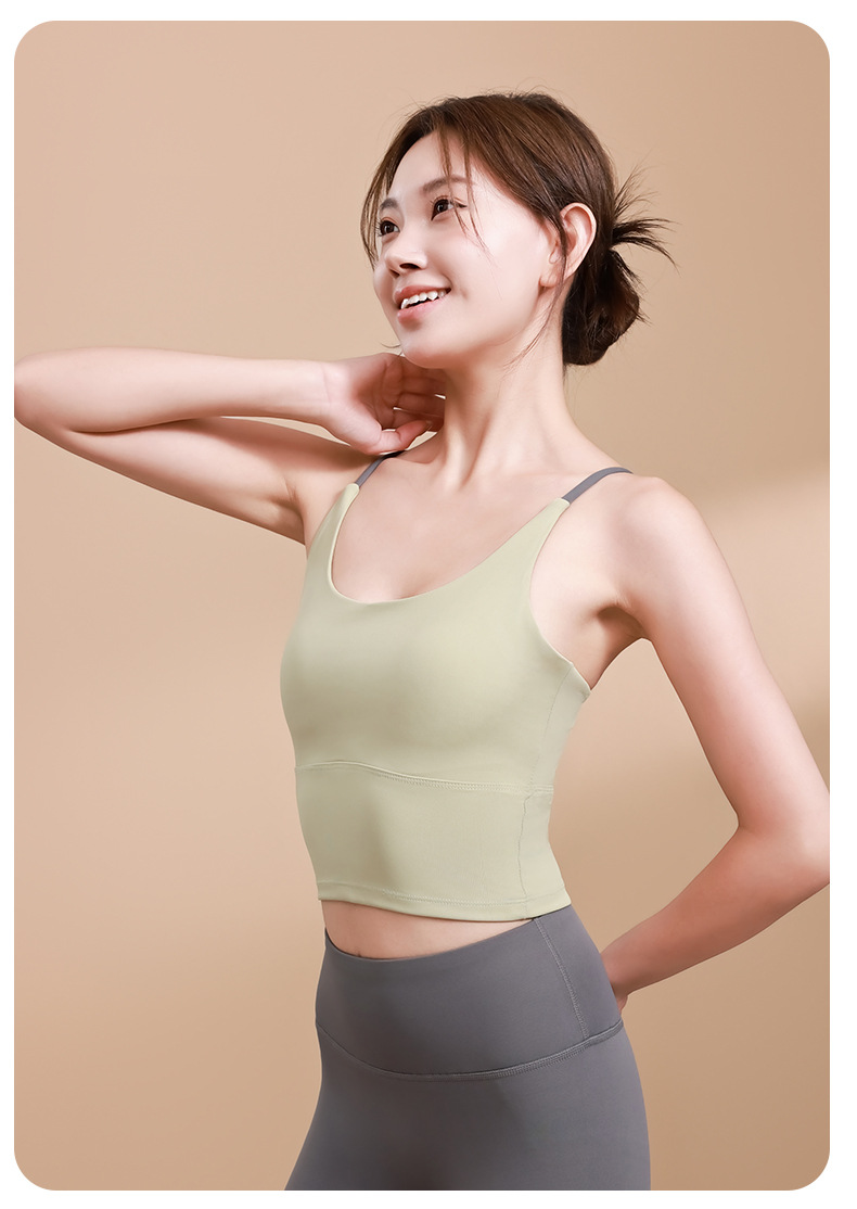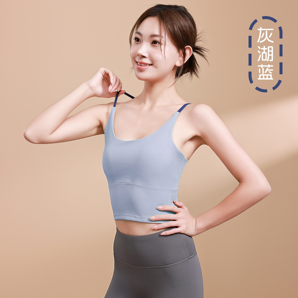 새로운 컬러 매칭 얇은 어깨 스트랩 요가 브라 피부 친화적인 누드 피트니스 조끼 높은 방탄 충격 방지 수집 스포츠 속옷