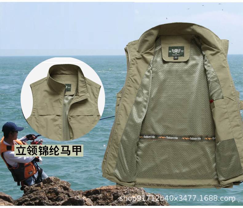 조끼 남자의 야외 조끼 캐주얼 봄과 가을 얇은 사진 낚시 조끼 중년 및 노인 여름 조끼