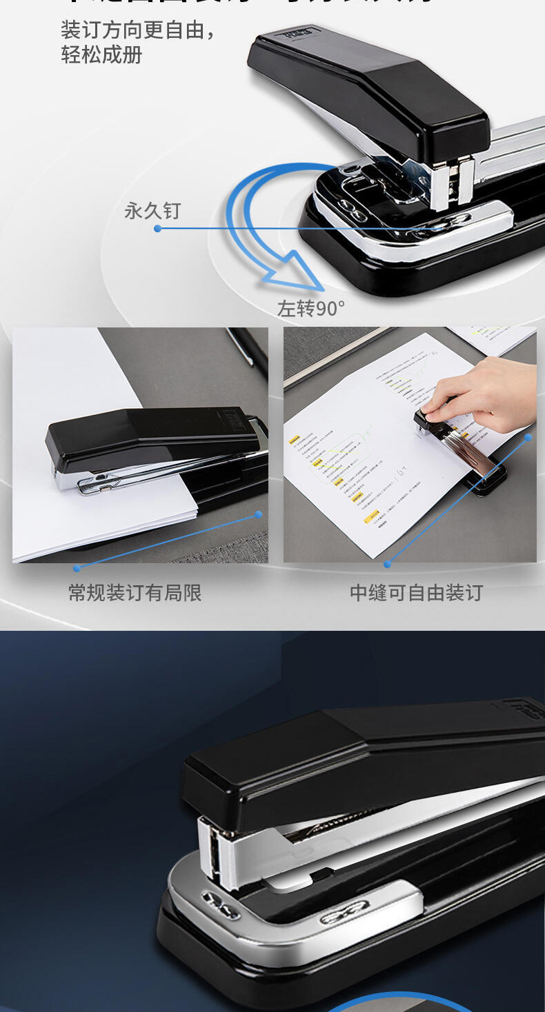 델리 회전 스테이플러 학생 스테이플러 대형 두꺼운 스테이플러 홈 다기능 사무실 노동 절약