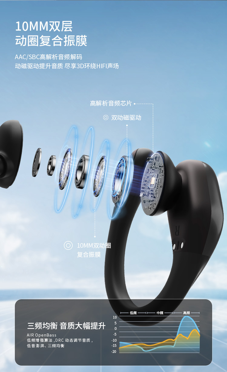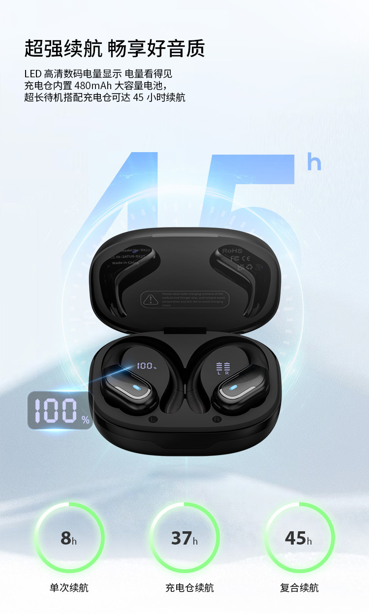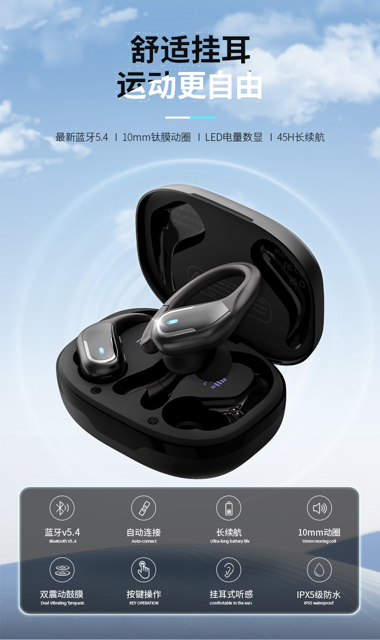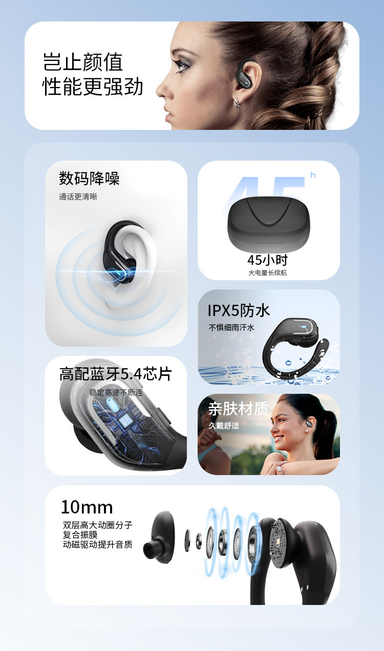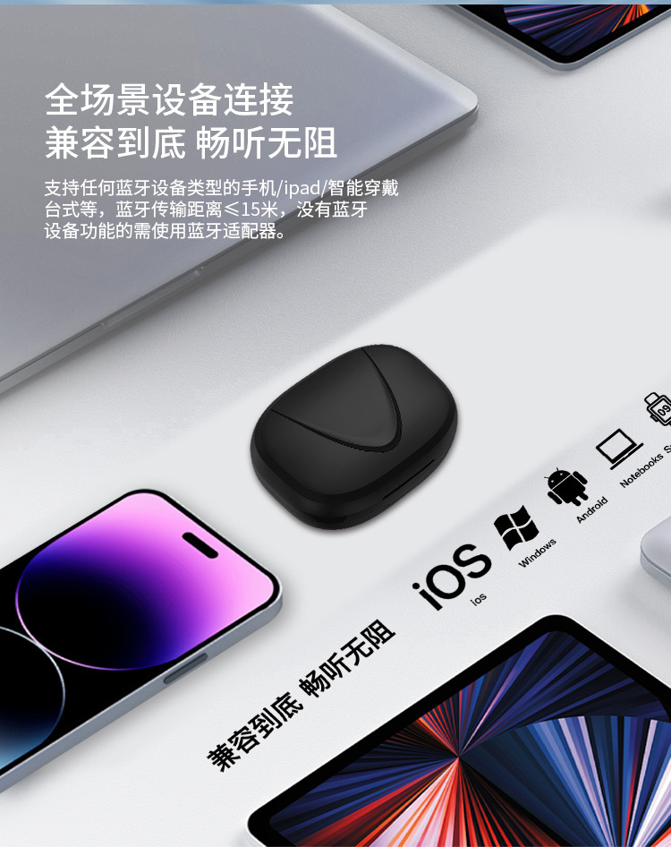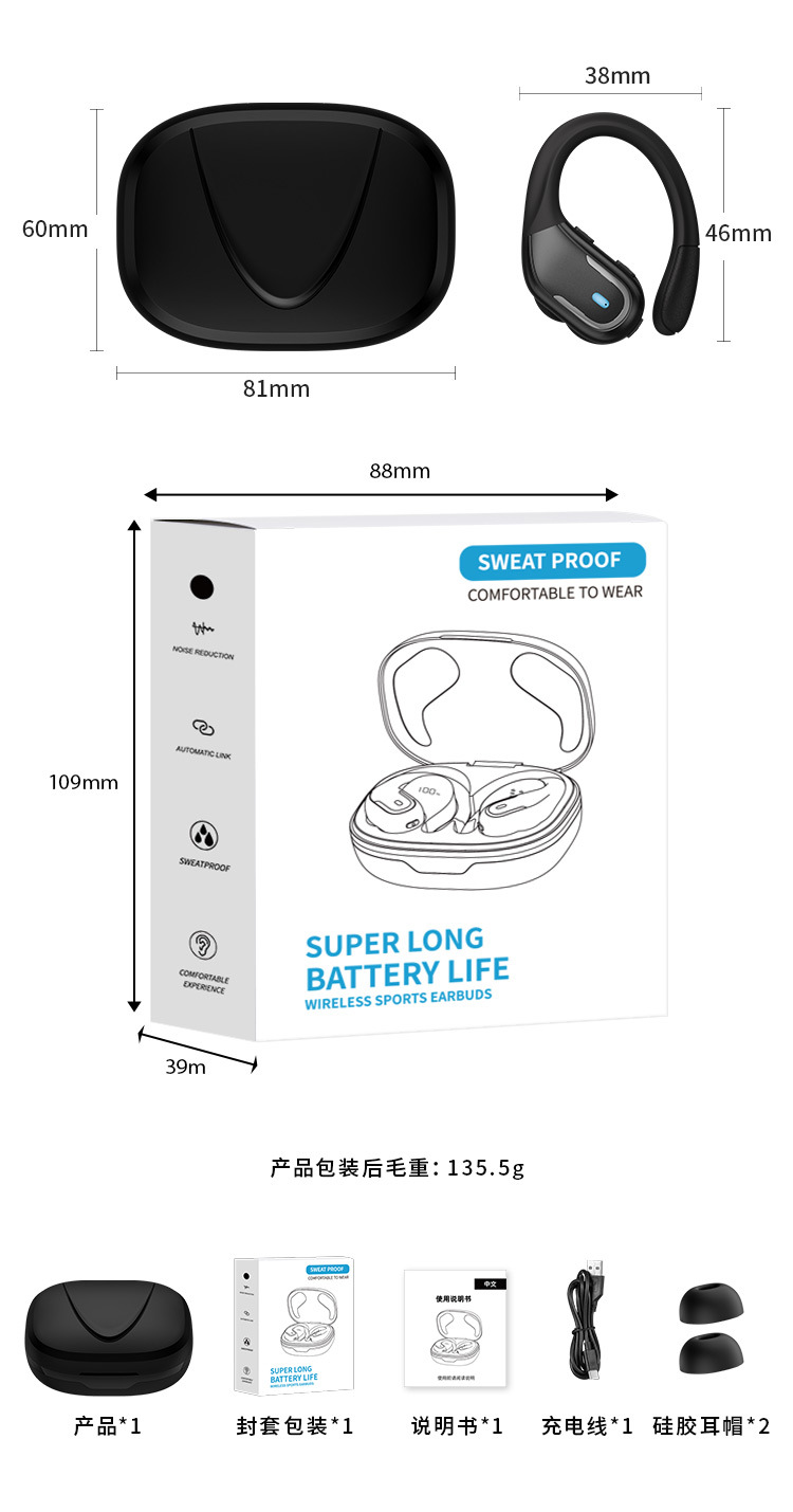 New Tide 전기 운동 미친 무선 귀를 던질 수 없습니다 지능형 소음 감소 헤드셋 편리한 블루투스 헤드셋