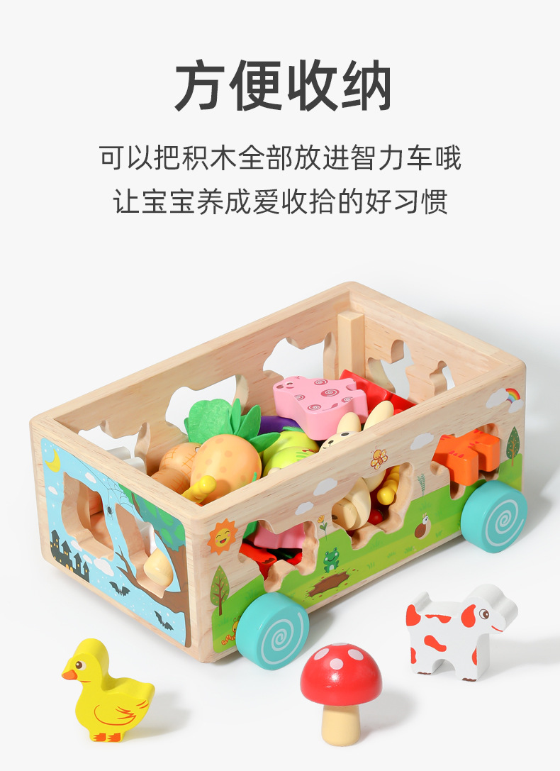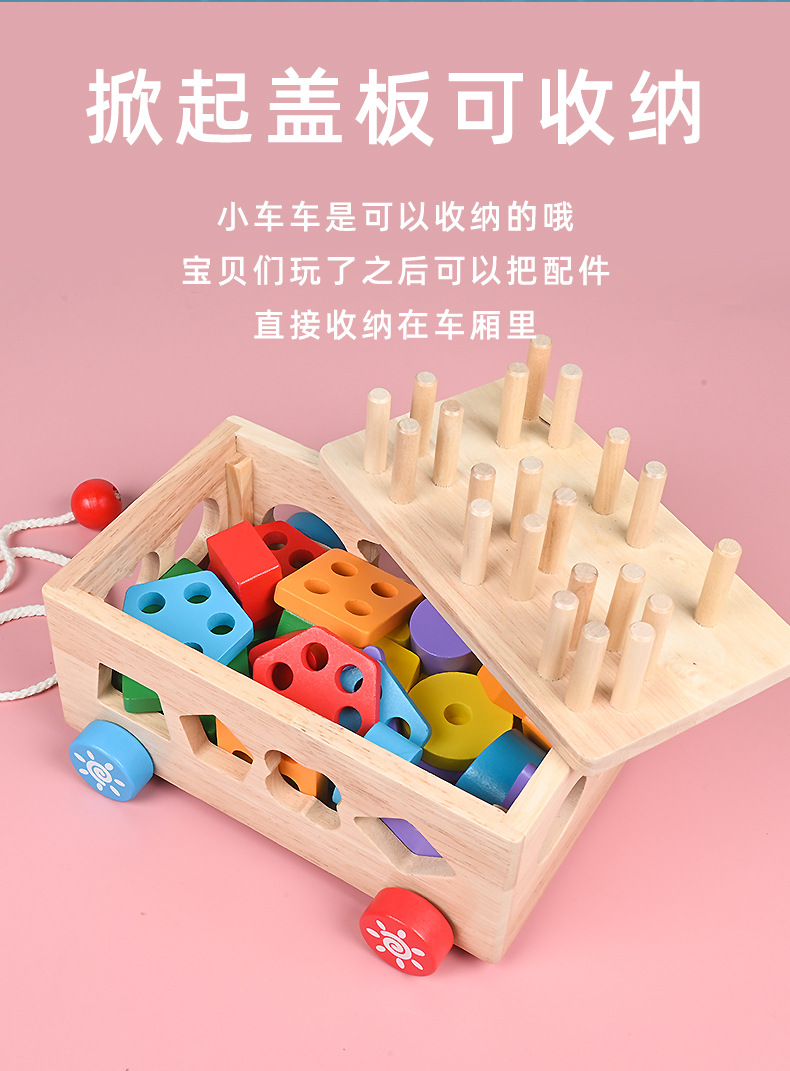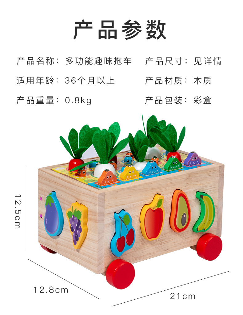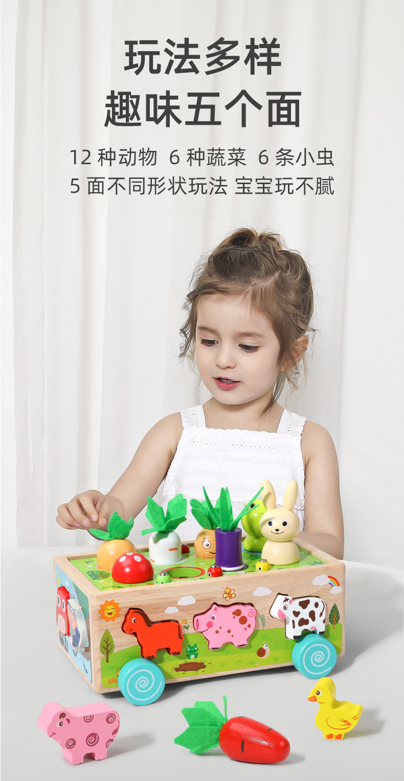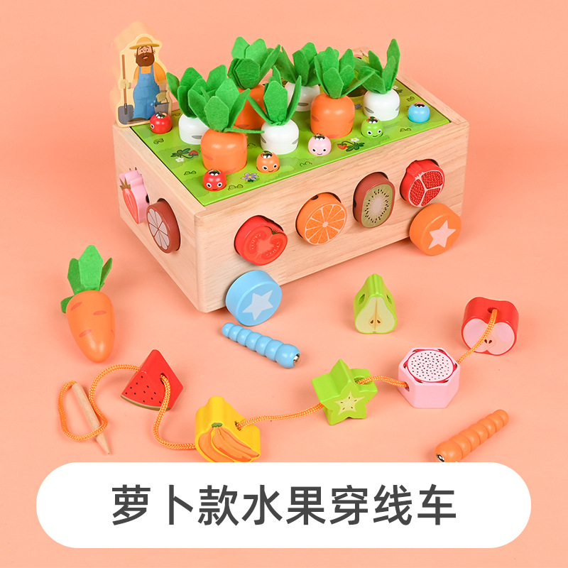 蒙氏玩具0-3岁 toys 蒙氏教具0-3 宝宝拔萝卜拖车
