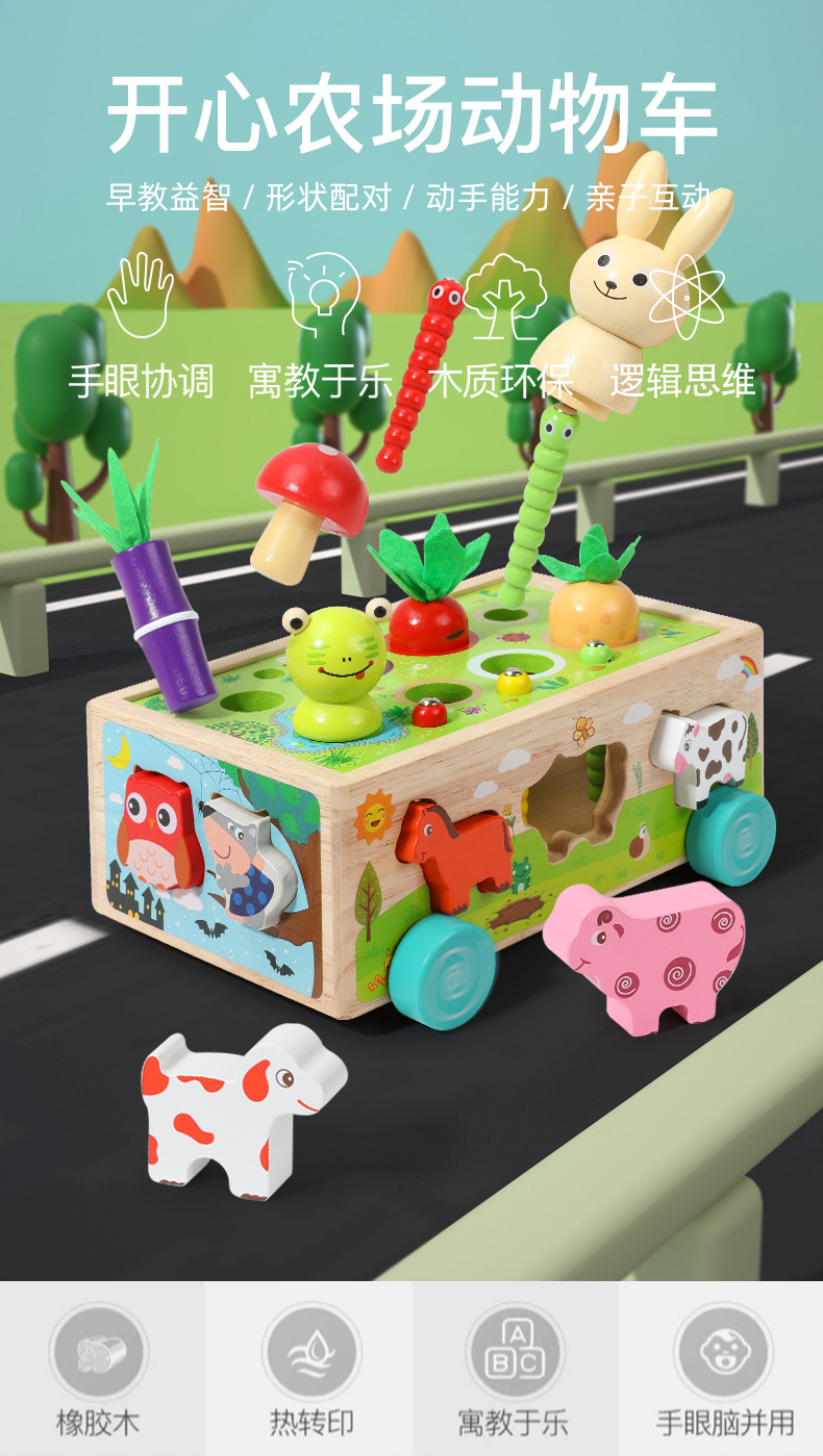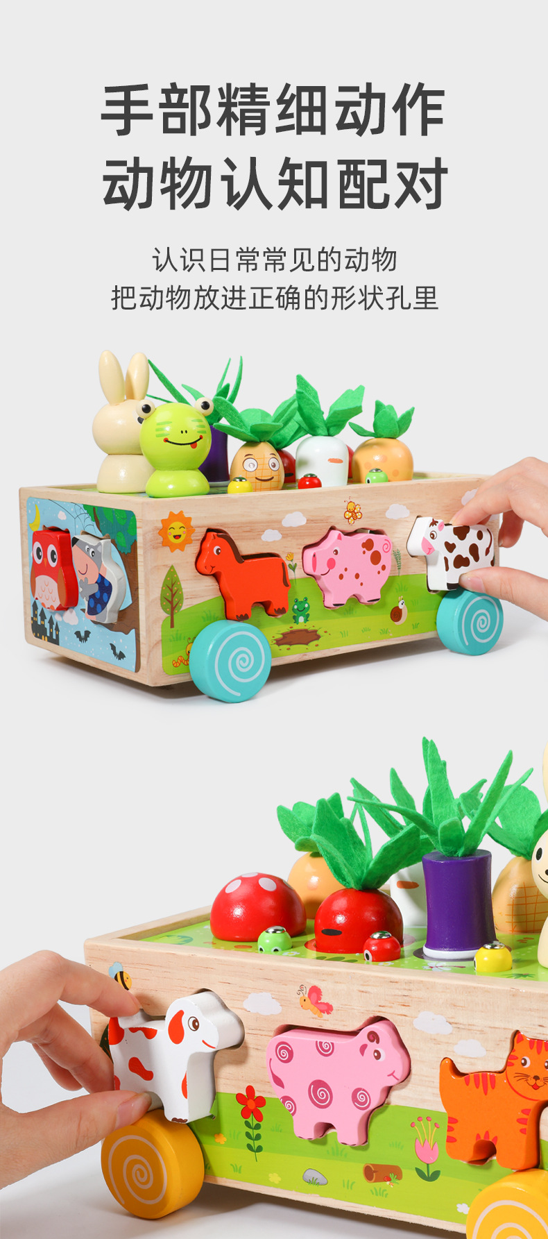 몬테소리 장난감 0-3세 농장 동물차 나무 아기 당근 뽑기 모양 맞추기 트레일러 조기 교육 교구스토어 가기