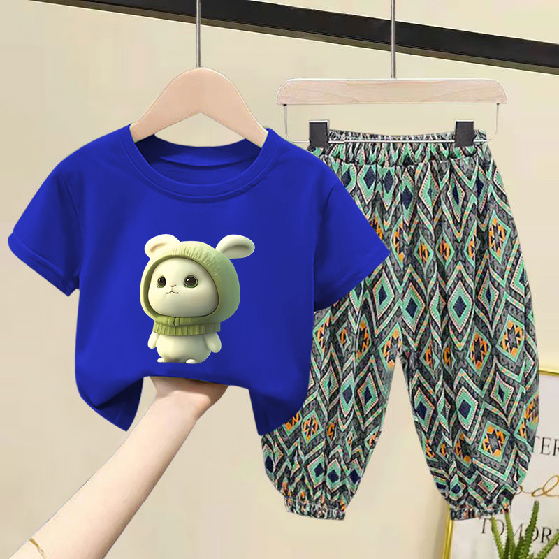 어린이 반팔 세트 2023 여름 새 남학생 면 티셔츠 소녀상 어린이 모기 방지 바지 투피스 세트
