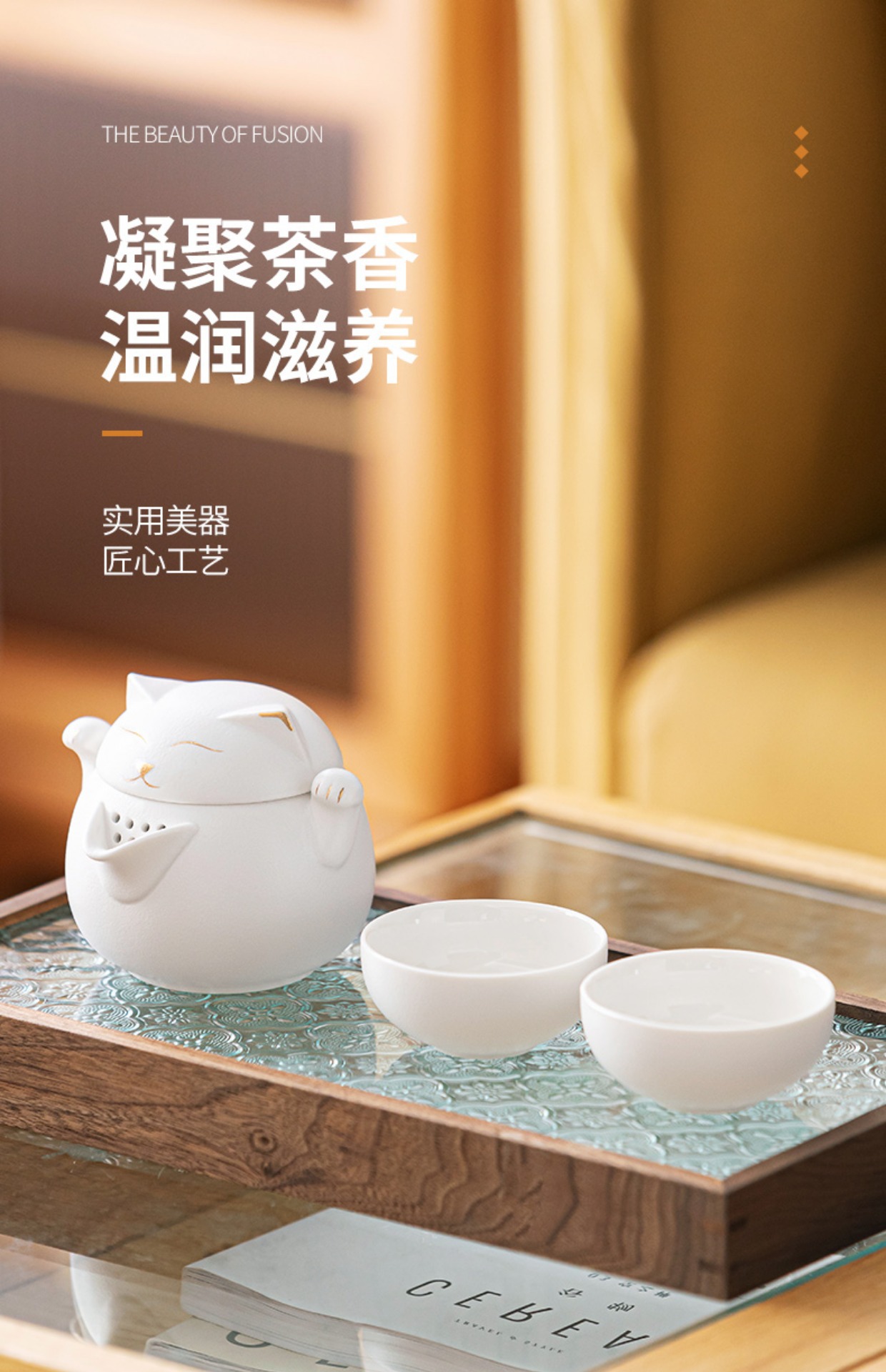 두 컵의 한 냄비 여행 차 세트 세트 휴대용 가방 빠른 손님 컵 차 세트 여행 휴대용 야외 행운의 고양이