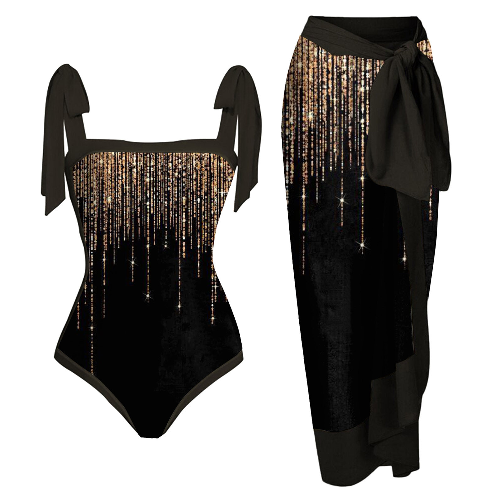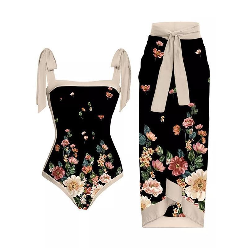 2023 아마존 프린트 인 스타일 양면 세트 수영복 디지털 프린트 비치 스커트 여성용 투피스 수영복