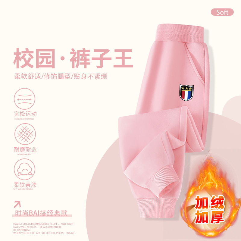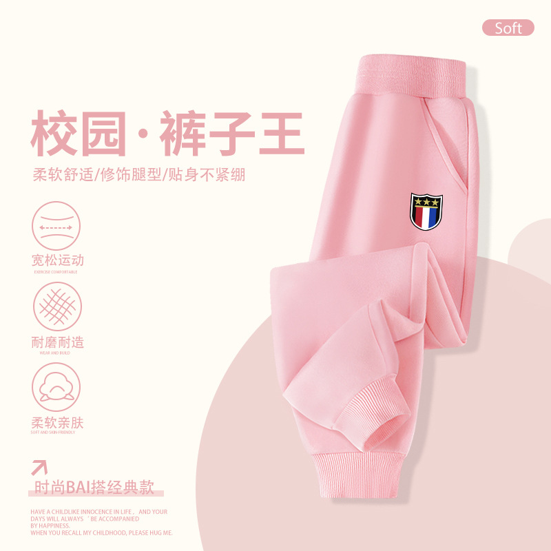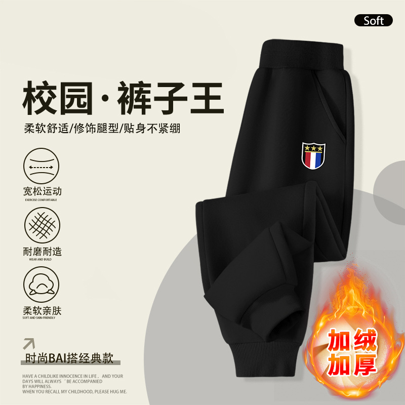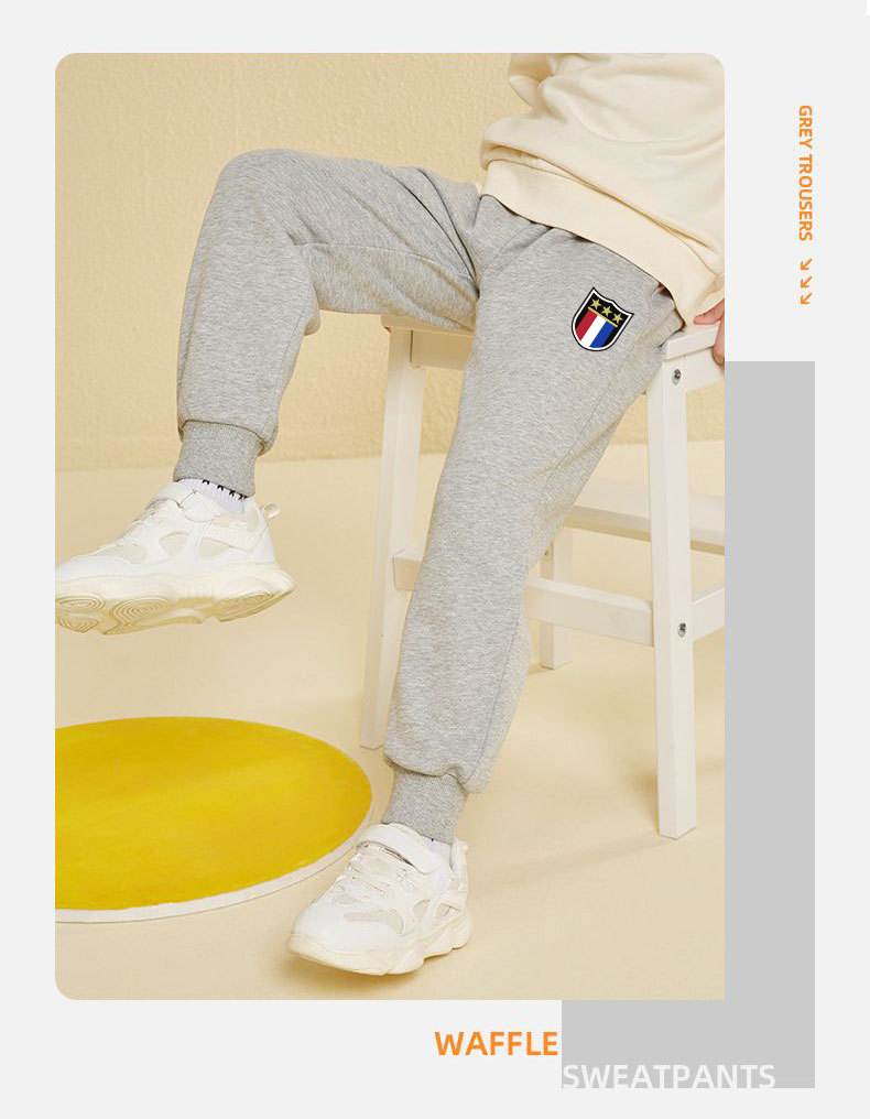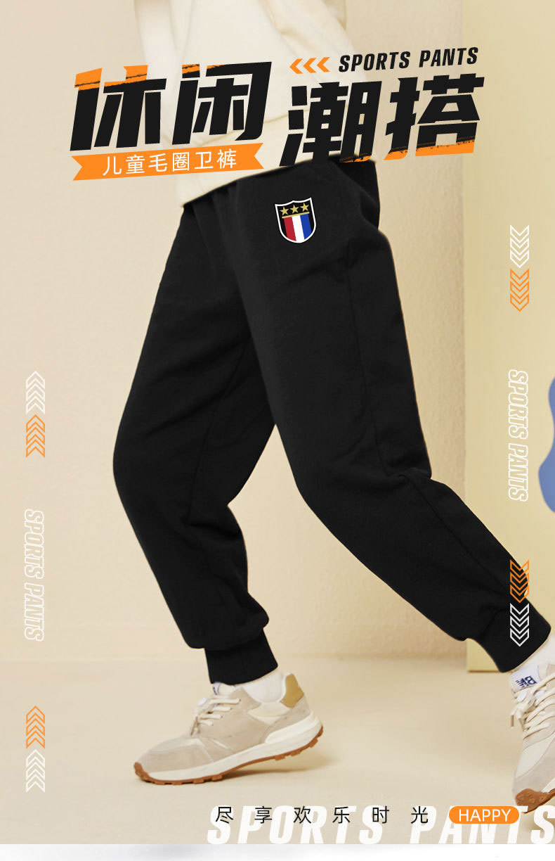 2025 봄 가을 신상 남아용 기모 스웨트팬츠, 중대형 아동용 배지 장식 바지, 멋스럽고 루즈한 신상 스포츠 팬츠, 트렌디스토어 가기