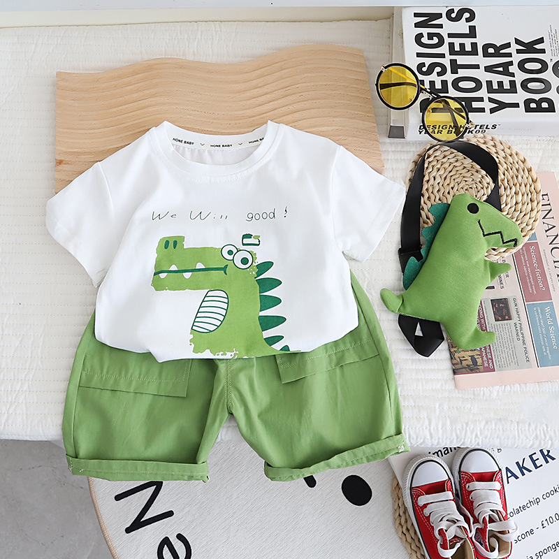 2023 어린이 반팔 공룡 세트 여름 새 남아 중소 어린이 아기 티셔츠 반바지 투피스 한국 스타일스토어 가기