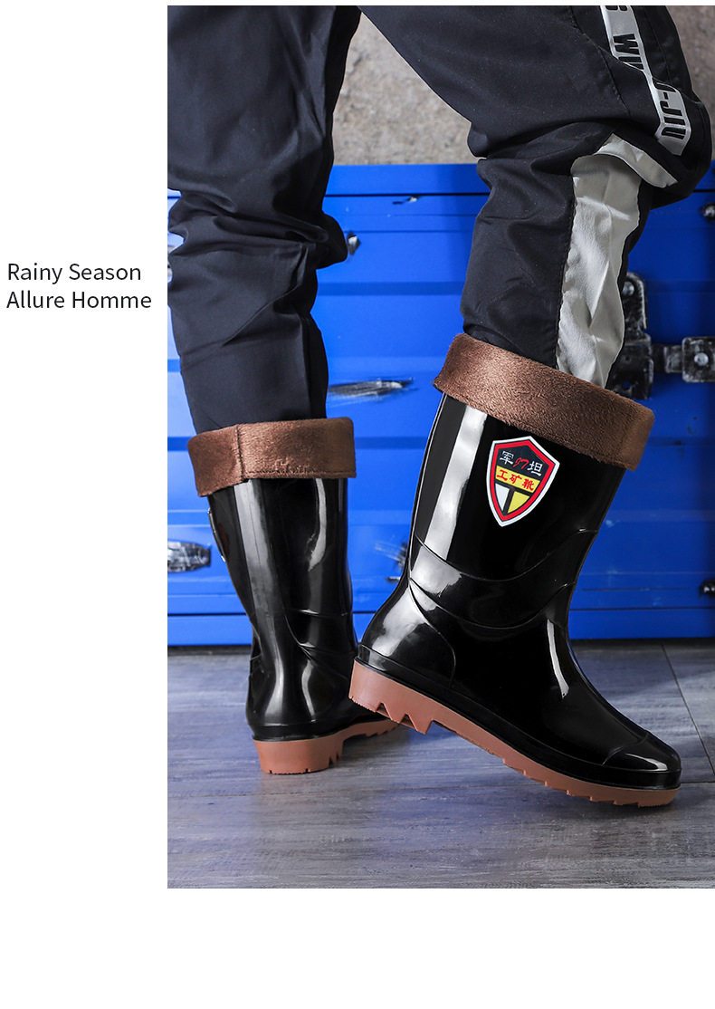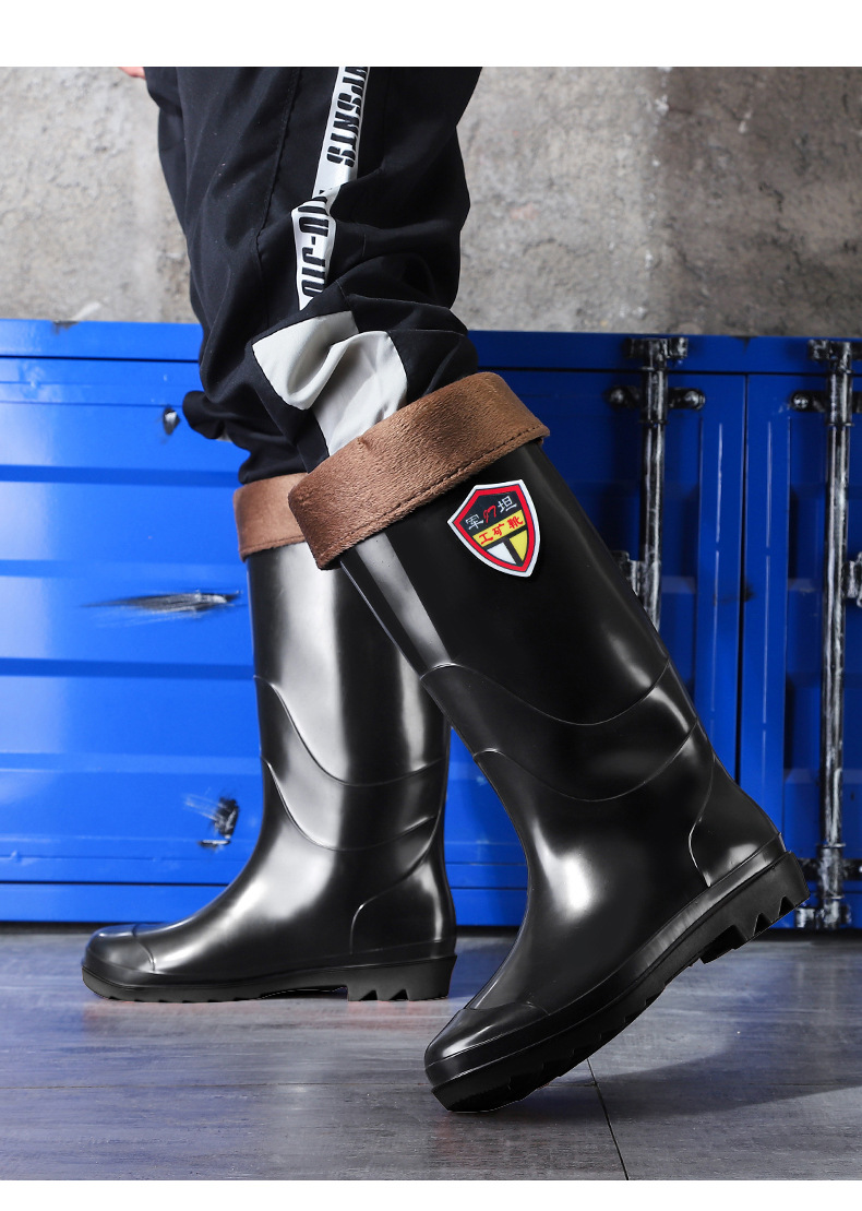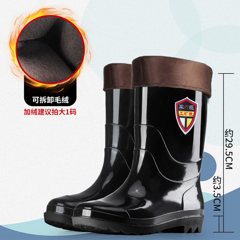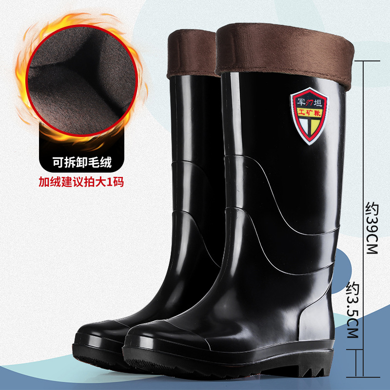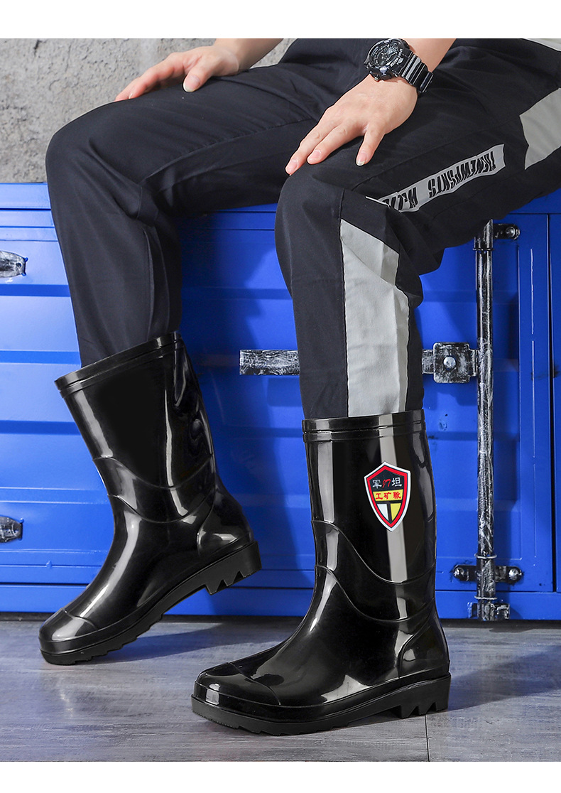 남성용 장화 도매 노동 보호 하이 튜브 주방 산 및 알칼리 방지 쇠고기 힘줄 바닥 내마모성 장화 따뜻한 물 신발 건설 현장 고무 신발