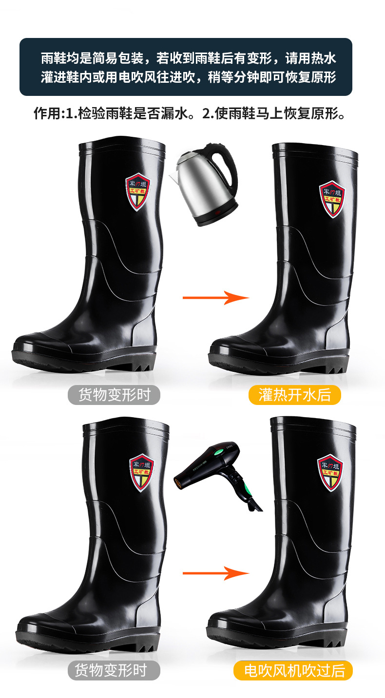남성용 장화 도매 노동 보호 하이 튜브 주방 산 및 알칼리 방지 쇠고기 힘줄 바닥 내마모성 장화 따뜻한 물 신발 건설 현장 고무 신발스토어 가기