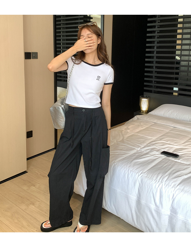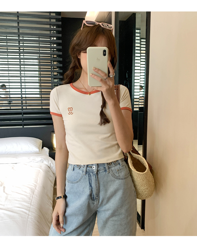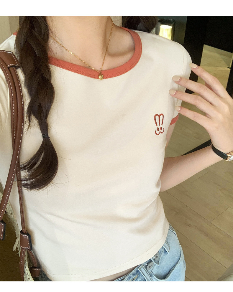 자수 어깨 반팔 티셔츠 여성 여름 2023 새로운 스타일 짧은 티셔츠 달콤하고 매운 라운드 넥 베이스 탑스토어 가기