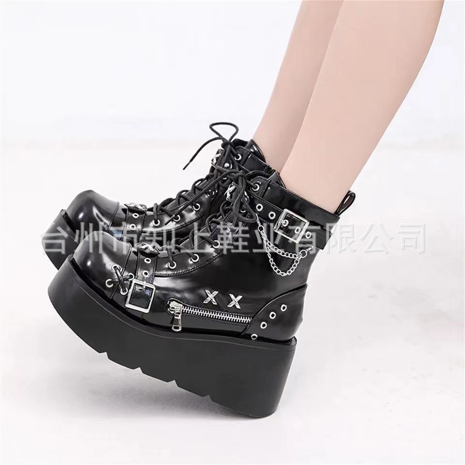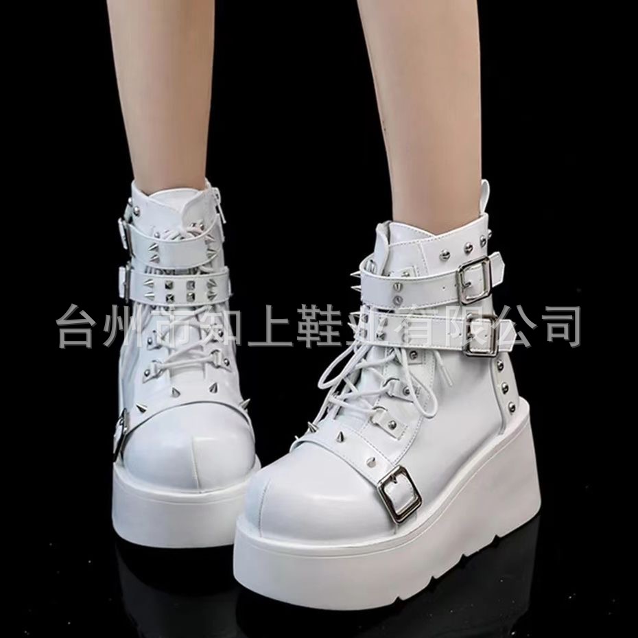 두꺼운 바닥 부츠 2023 새로운 리벳 펜던트 두꺼운 바닥 짧은 부츠 여성용 유럽 및 미국 다크 펑크 오토바이 부츠스토어 가기