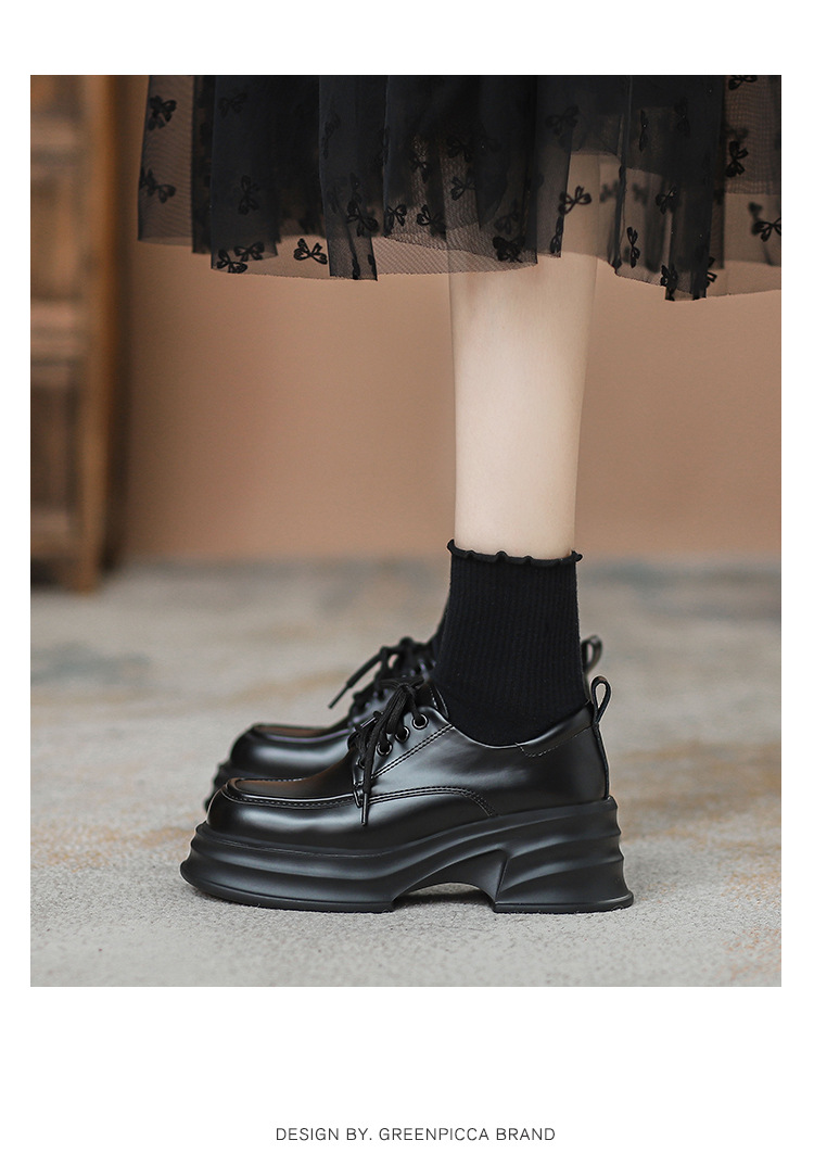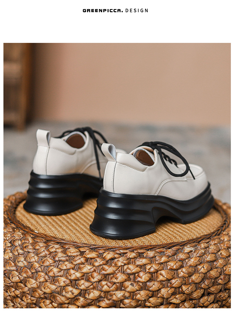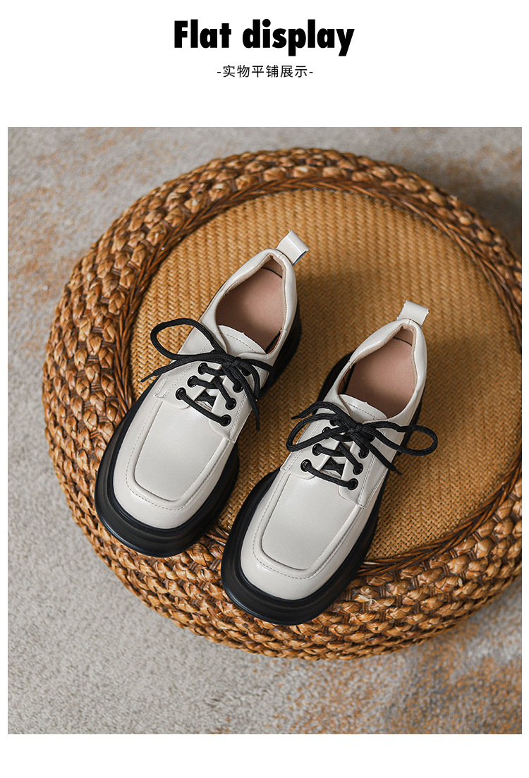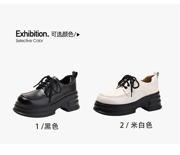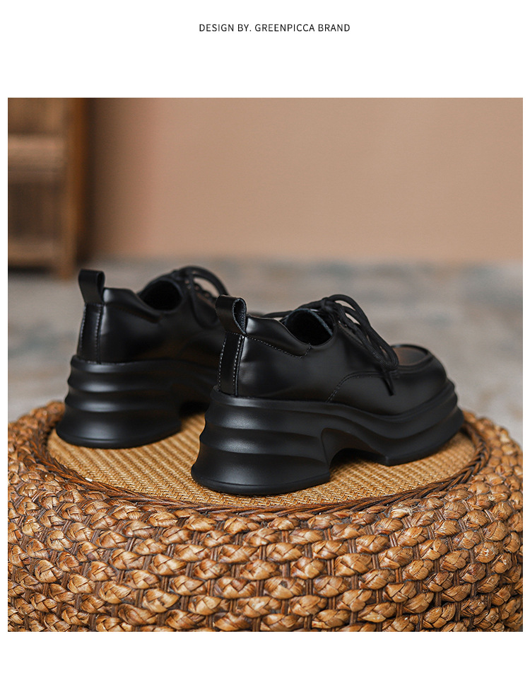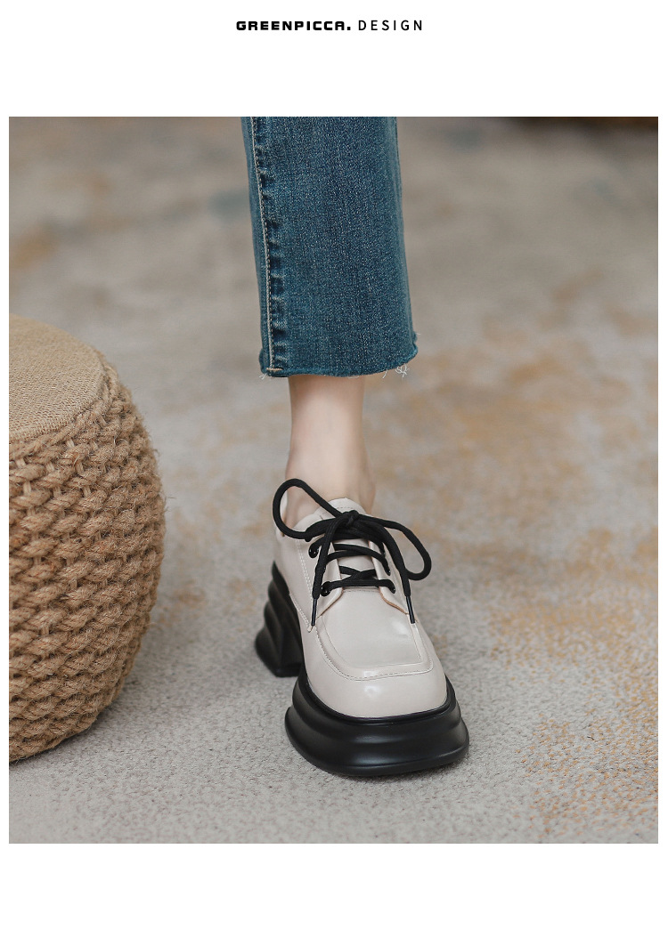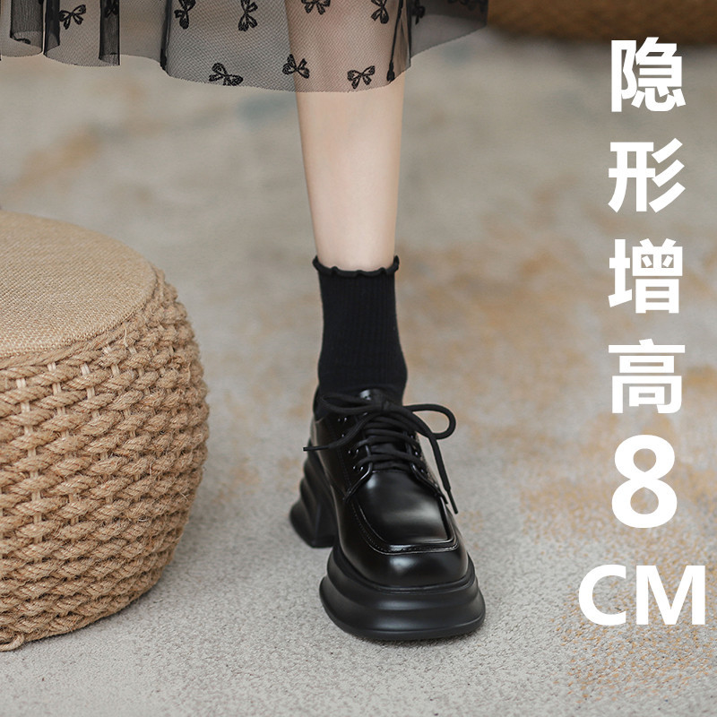 영국 스타일 머핀 레이스 업 작은 가죽 신발 여성용 2023 새로운 하이힐 두꺼운 솔 증가 8cm 로퍼스토어 가기