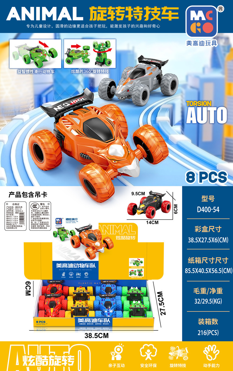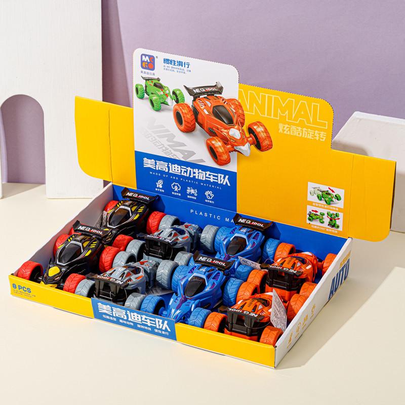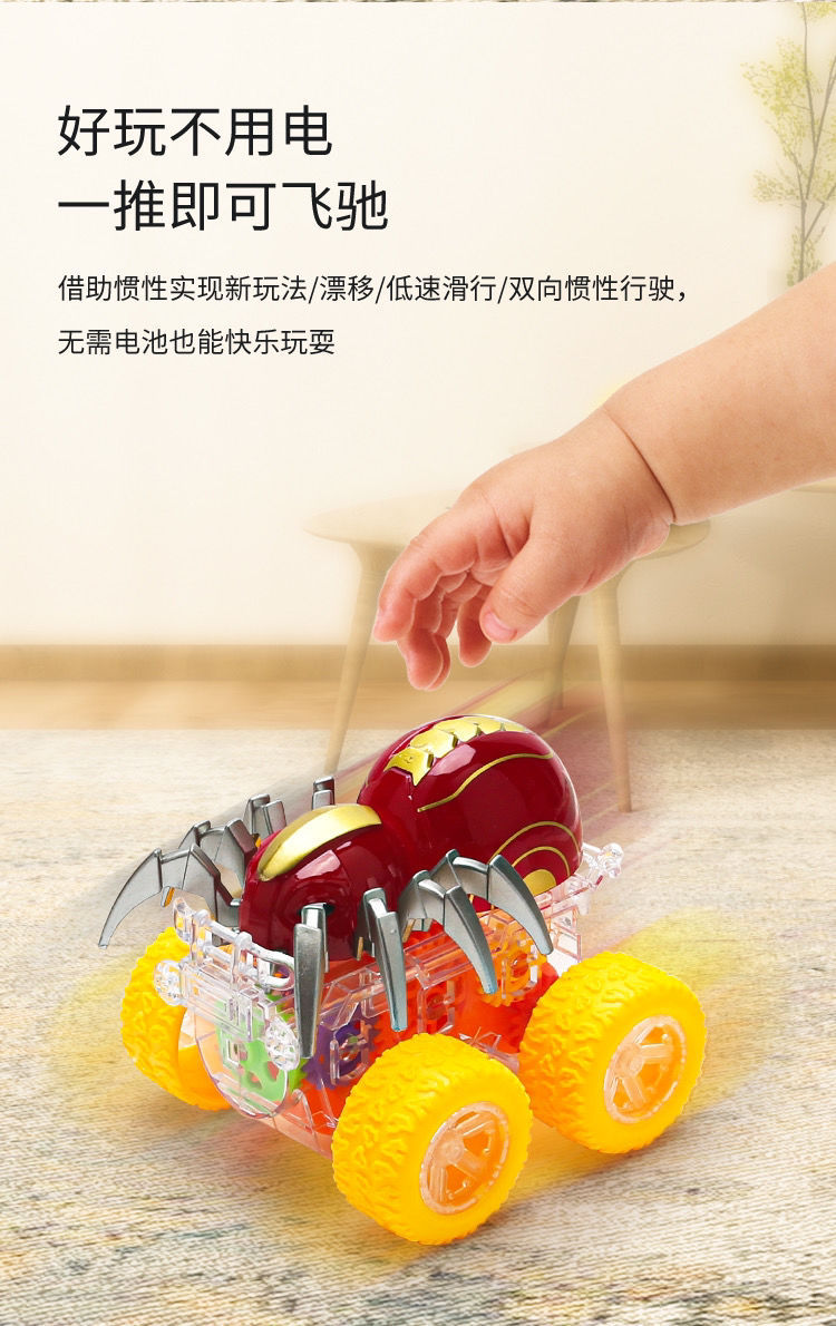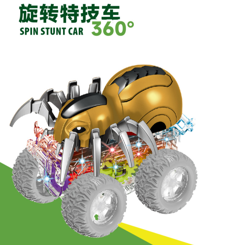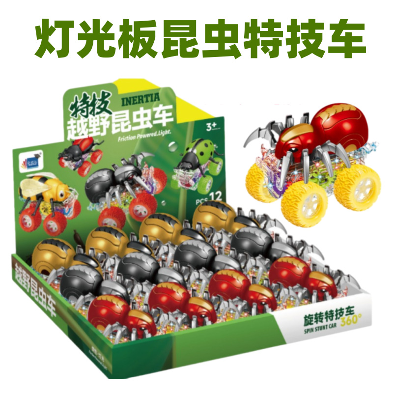 디스플레이 박스 조명 화려한 투명 기어 관성 4륜 구동 스파이더 자동차 스턴트 자동차 어린이 장난감 자동차 남아 여아용