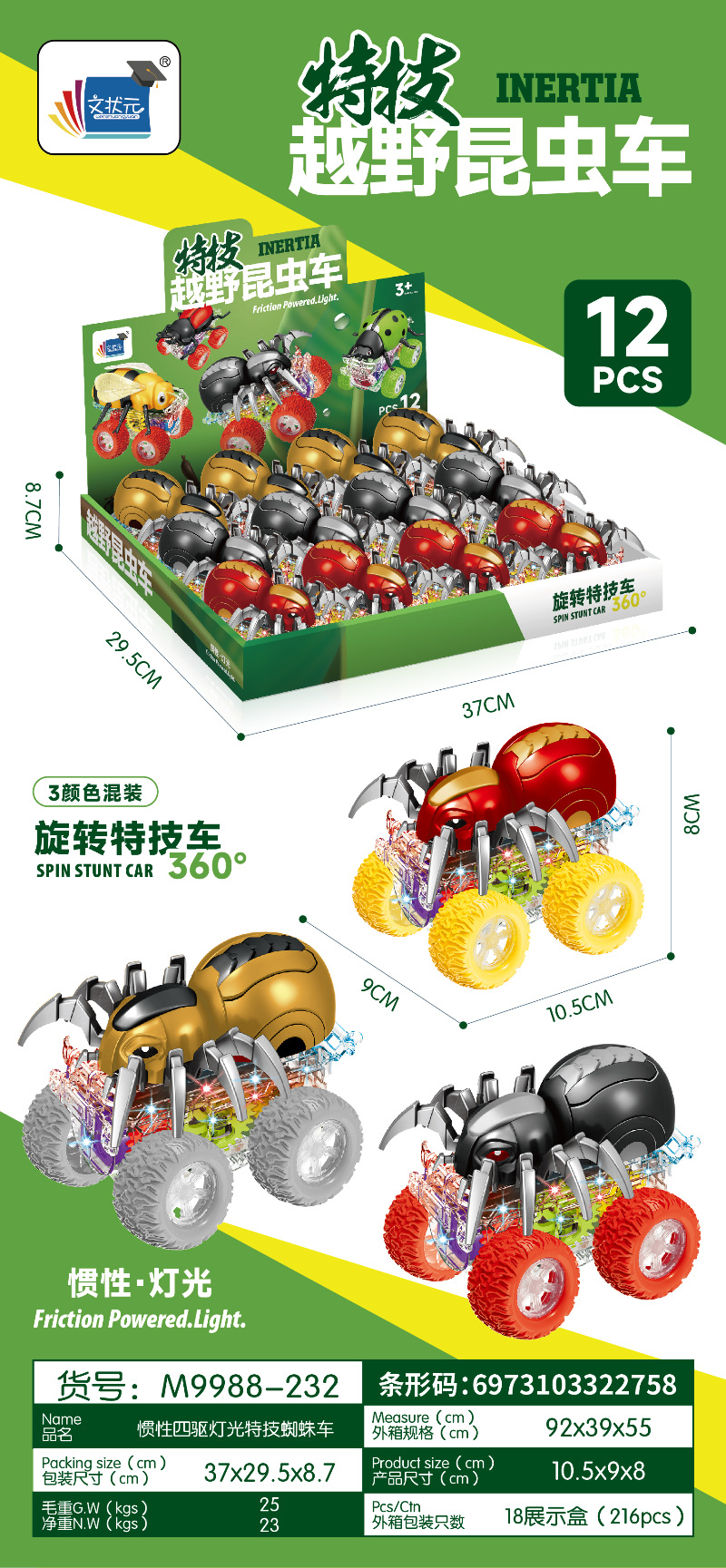 • 9988-232 스파이더 라이트 스턴트카 [1박스 12개입, 박스 단위로 주문해주세요]