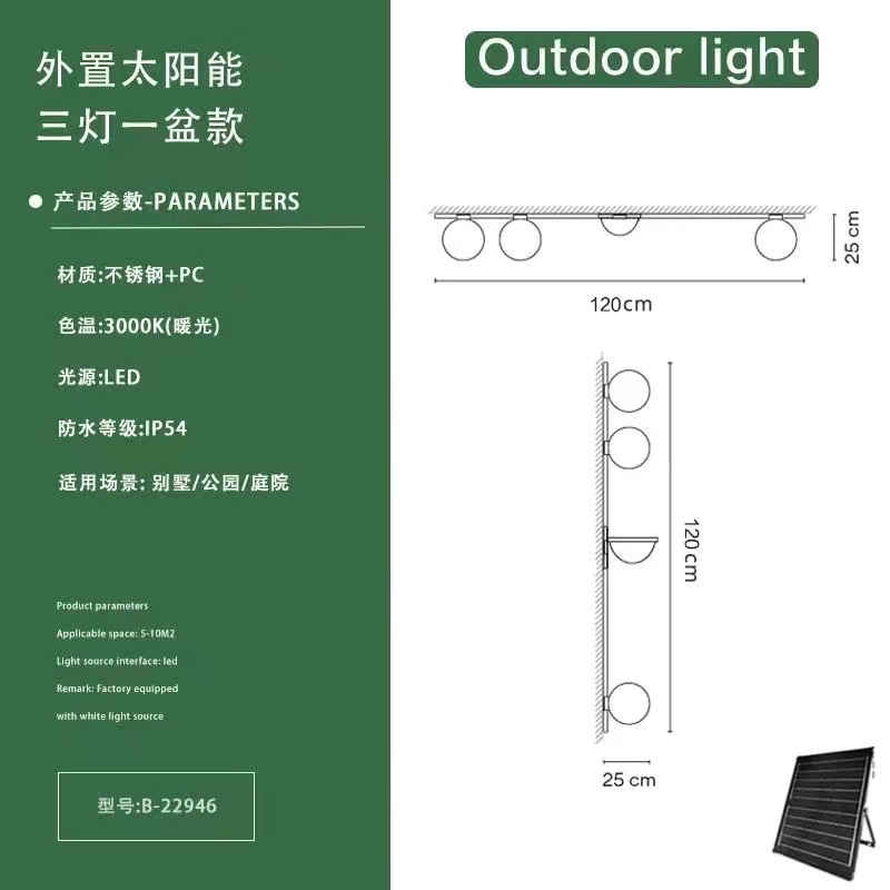 • 태양열 통합-3 개의 조명 + 단일 화분-반원 (수평 및 수직으로 설치 가능)