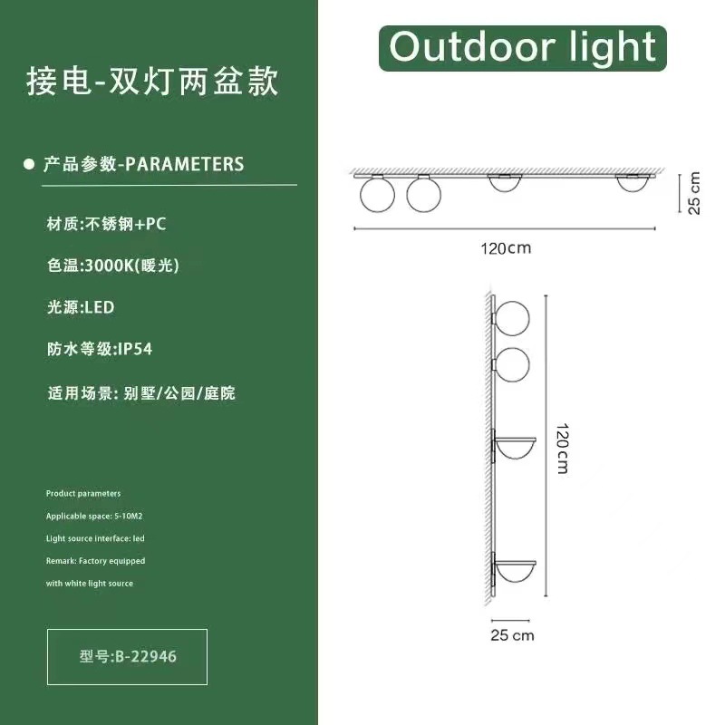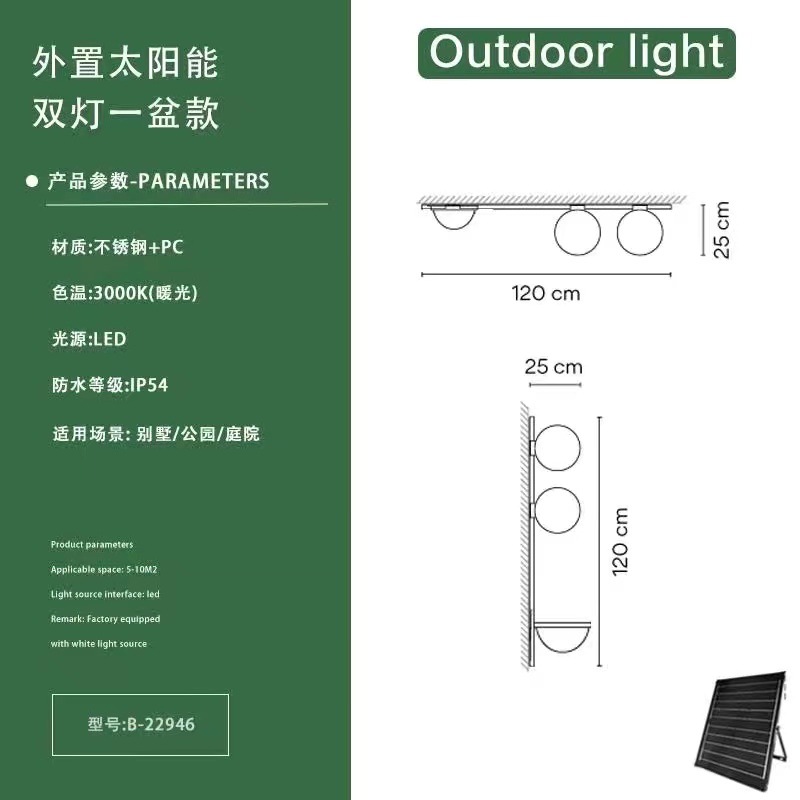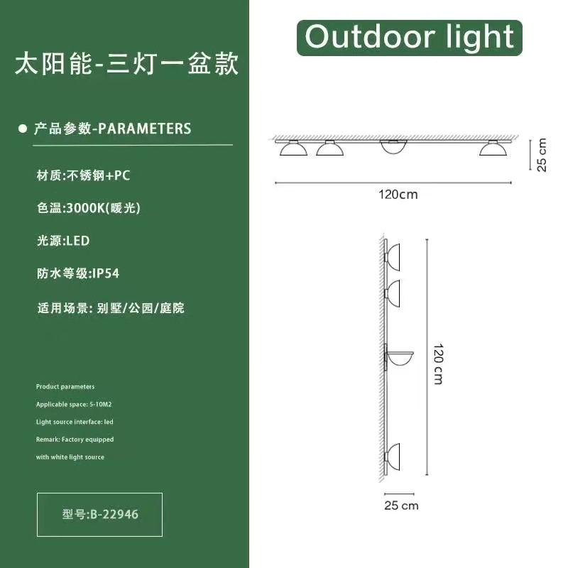 • 솔라 원-더블 램프 + 단일 화분-반원 (수평 및 수직으로 설치 가능)