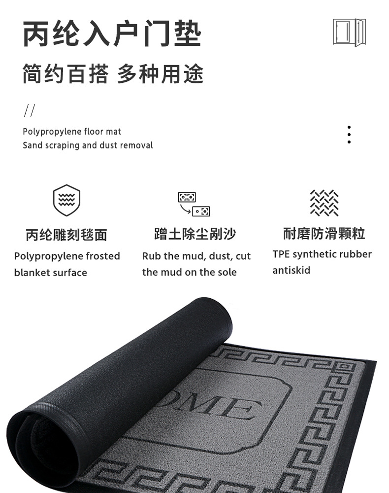 크로스 보더 아마존 미끄럼 방지 내마모성 야외 도어 매트 입구 진흙 먼지 제거 입구 매트 폴리 프로필렌 고무 매트