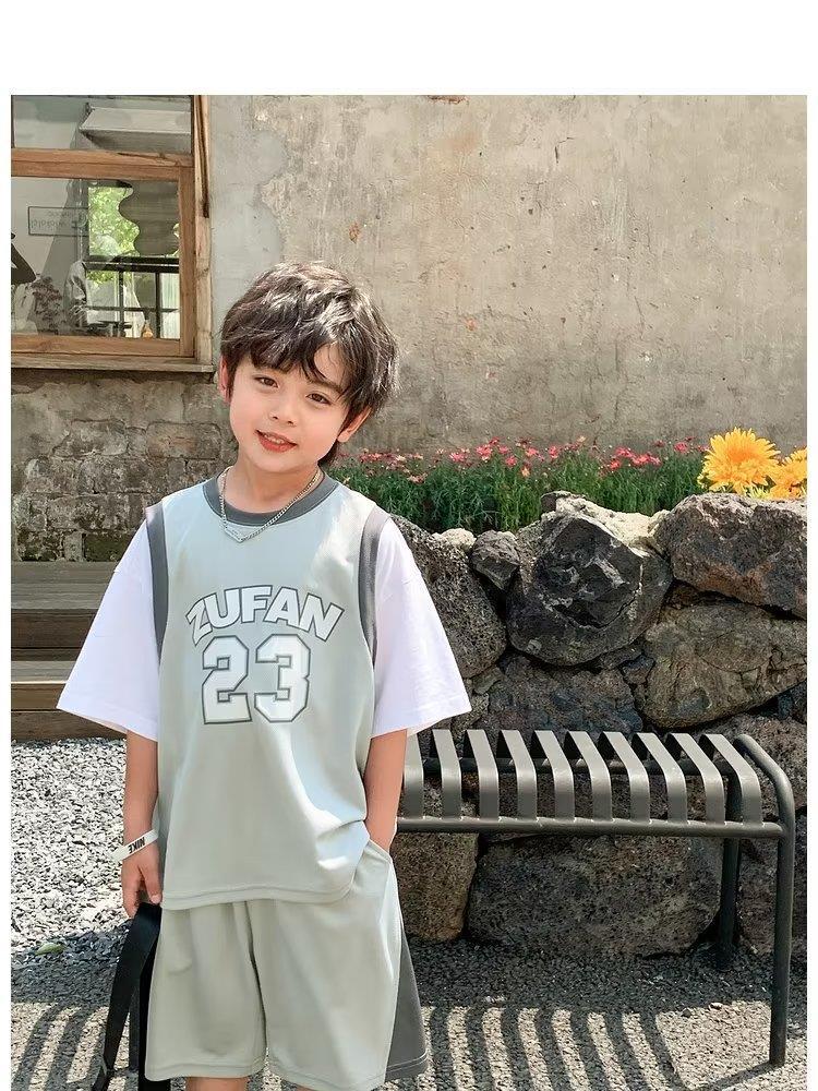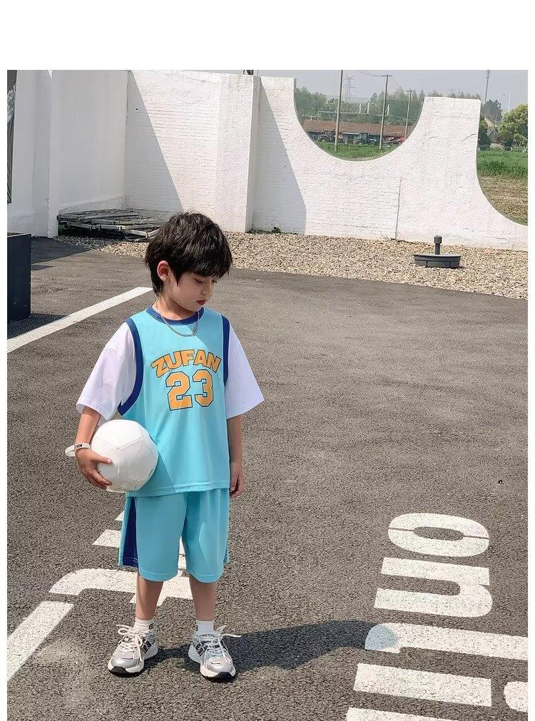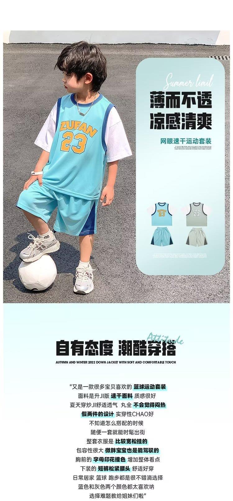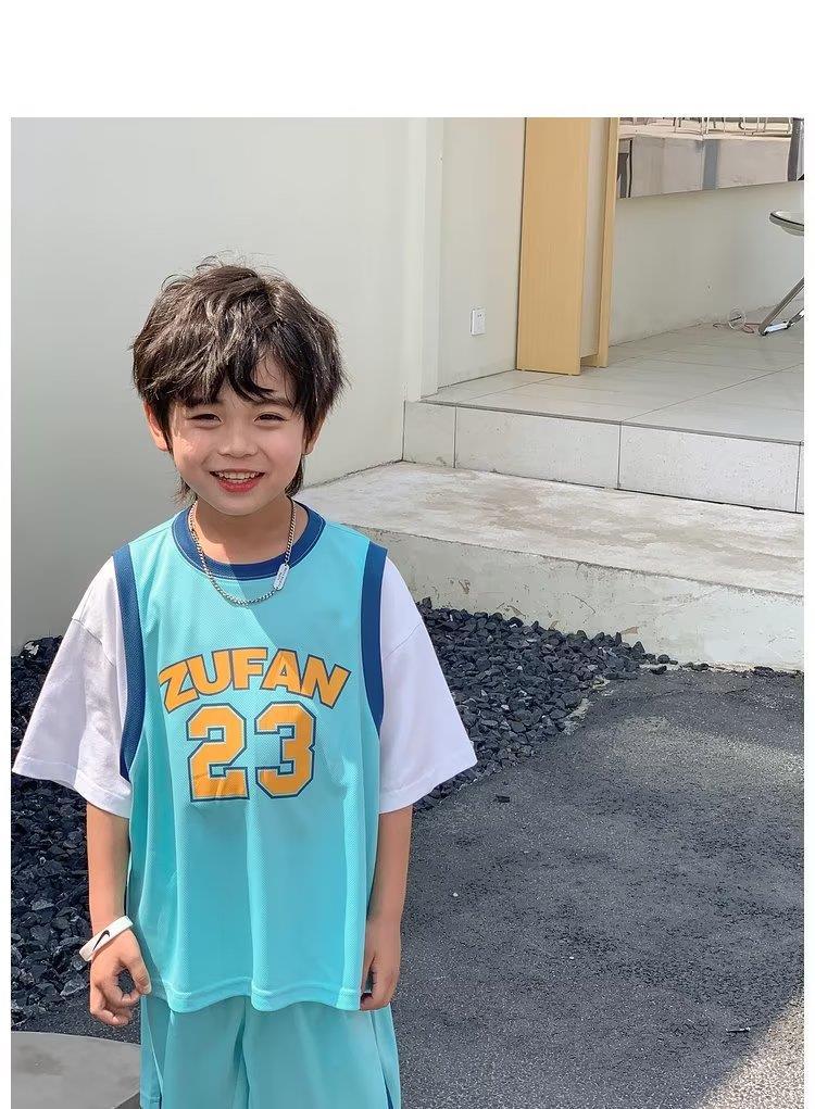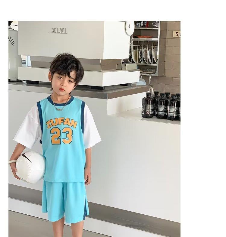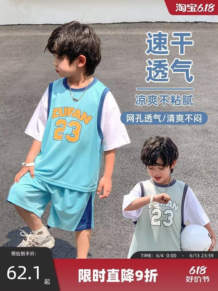 어린이 여름 의류 속건 스포츠 남아 트렌디 한 여름 얇은 남아 세트 2023 새로운 중대형 어린이 농구복스토어 가기