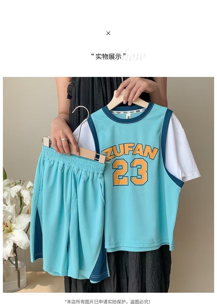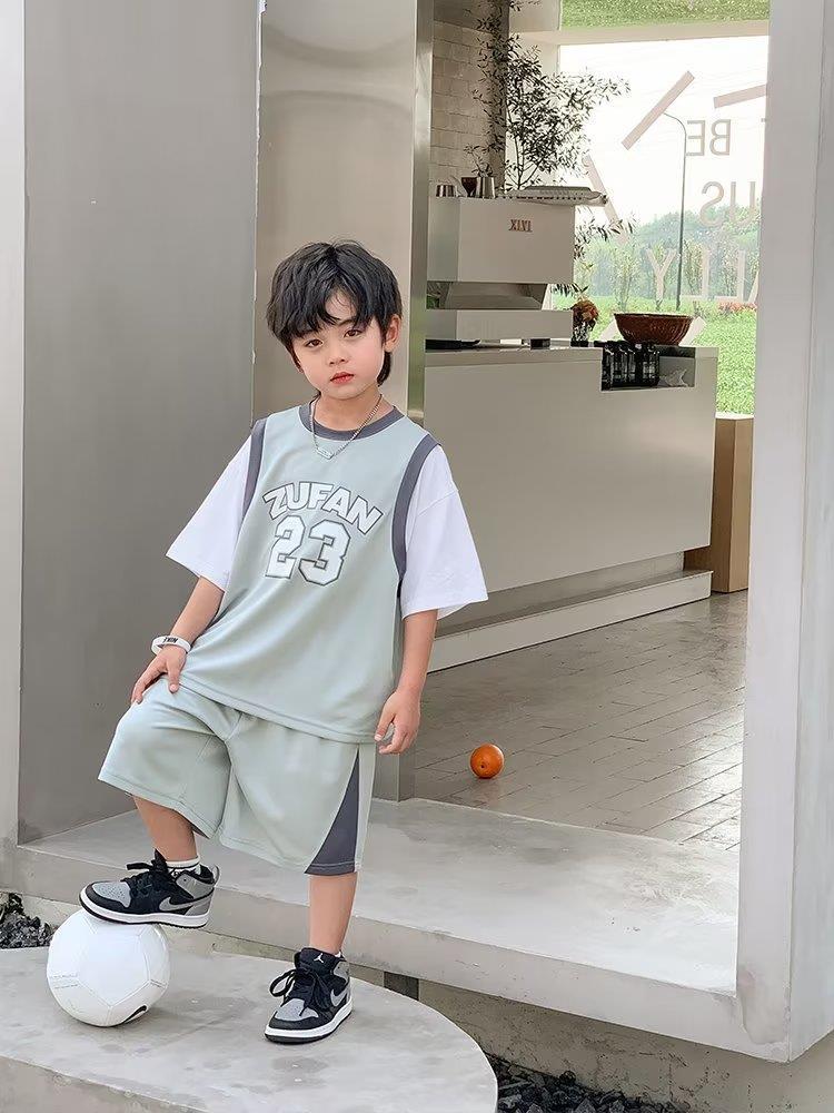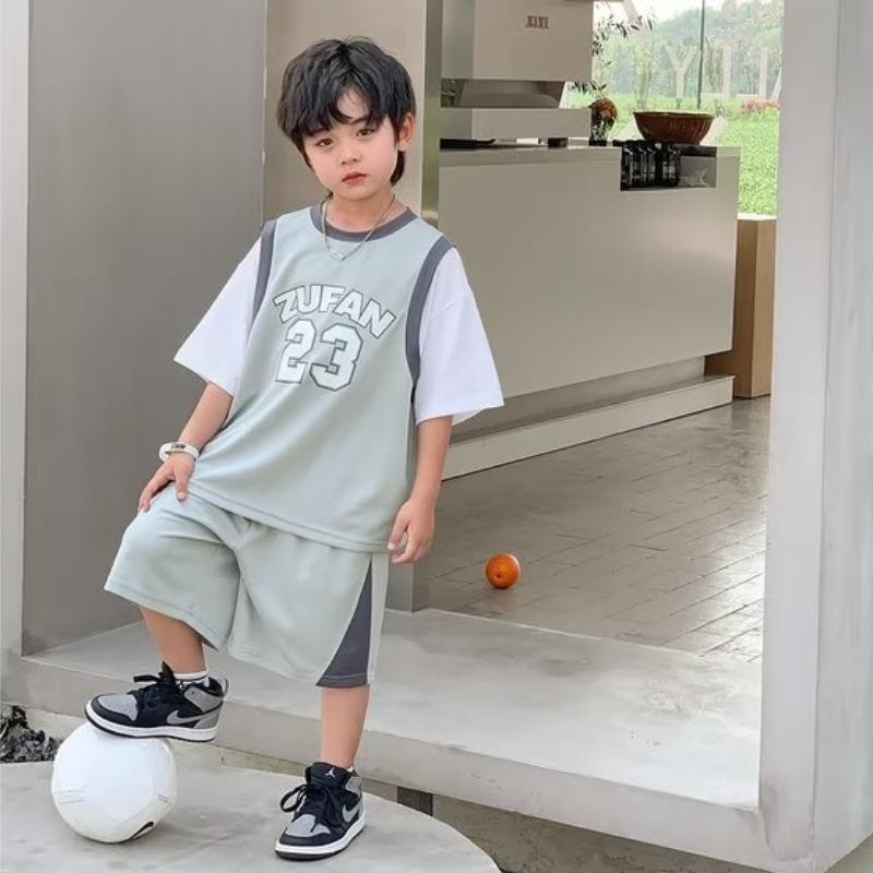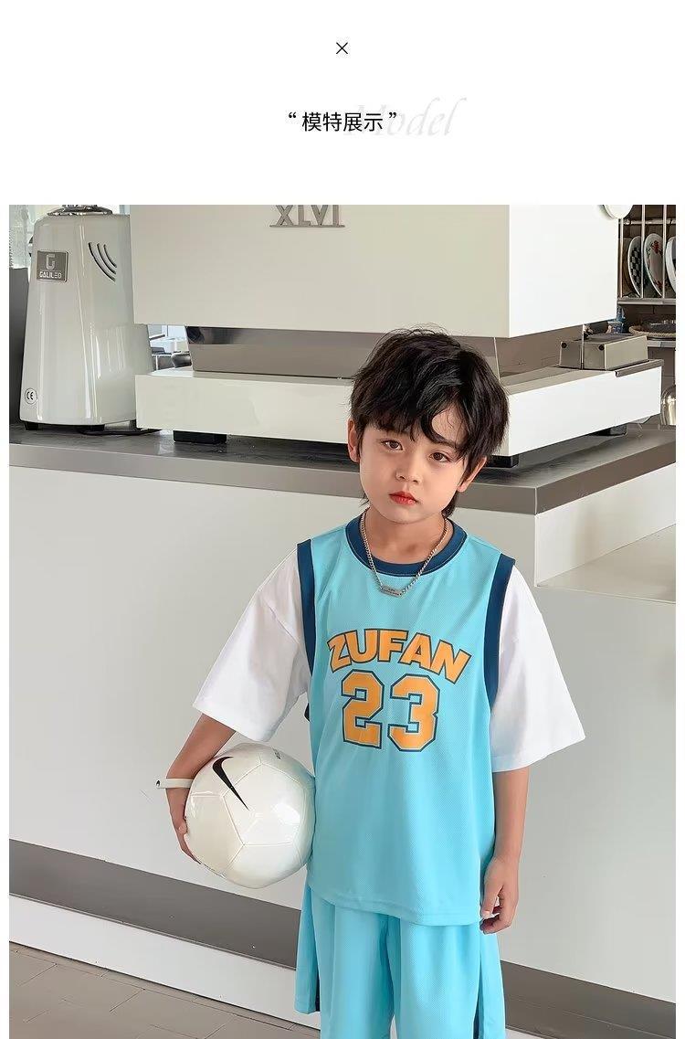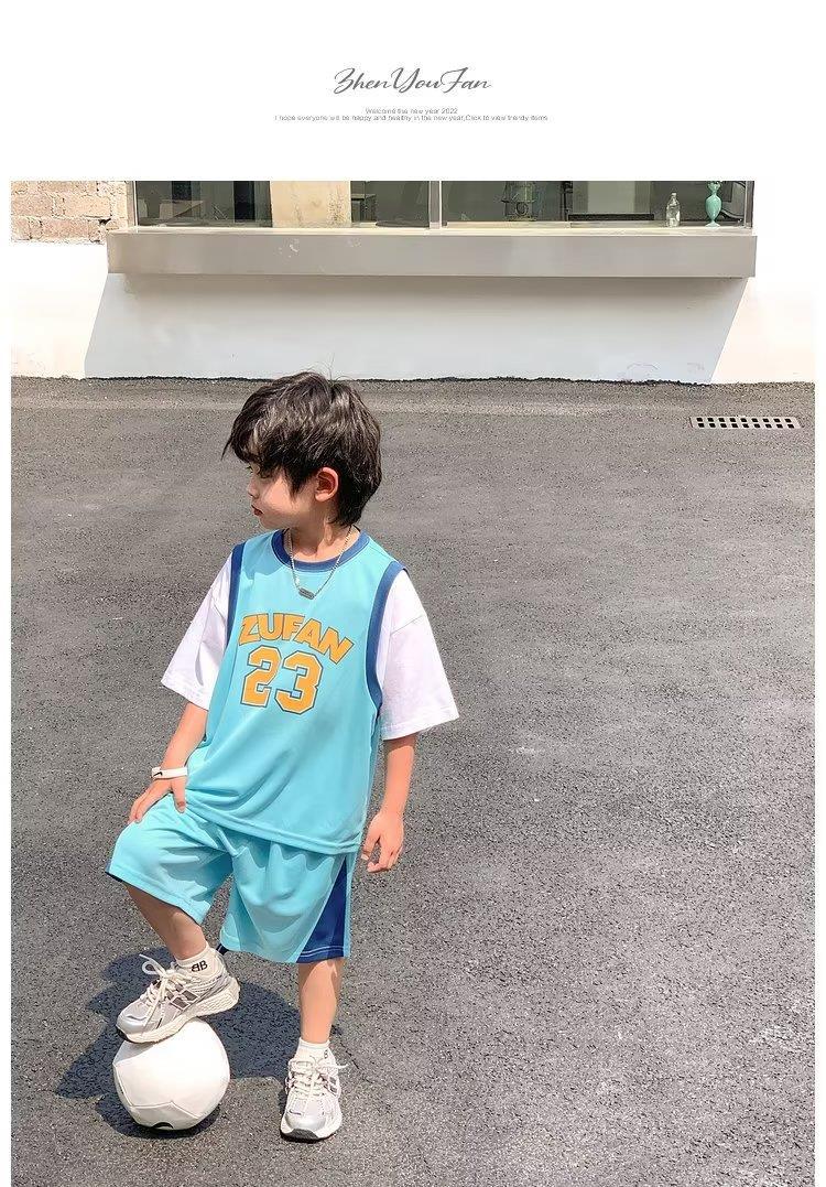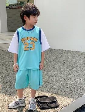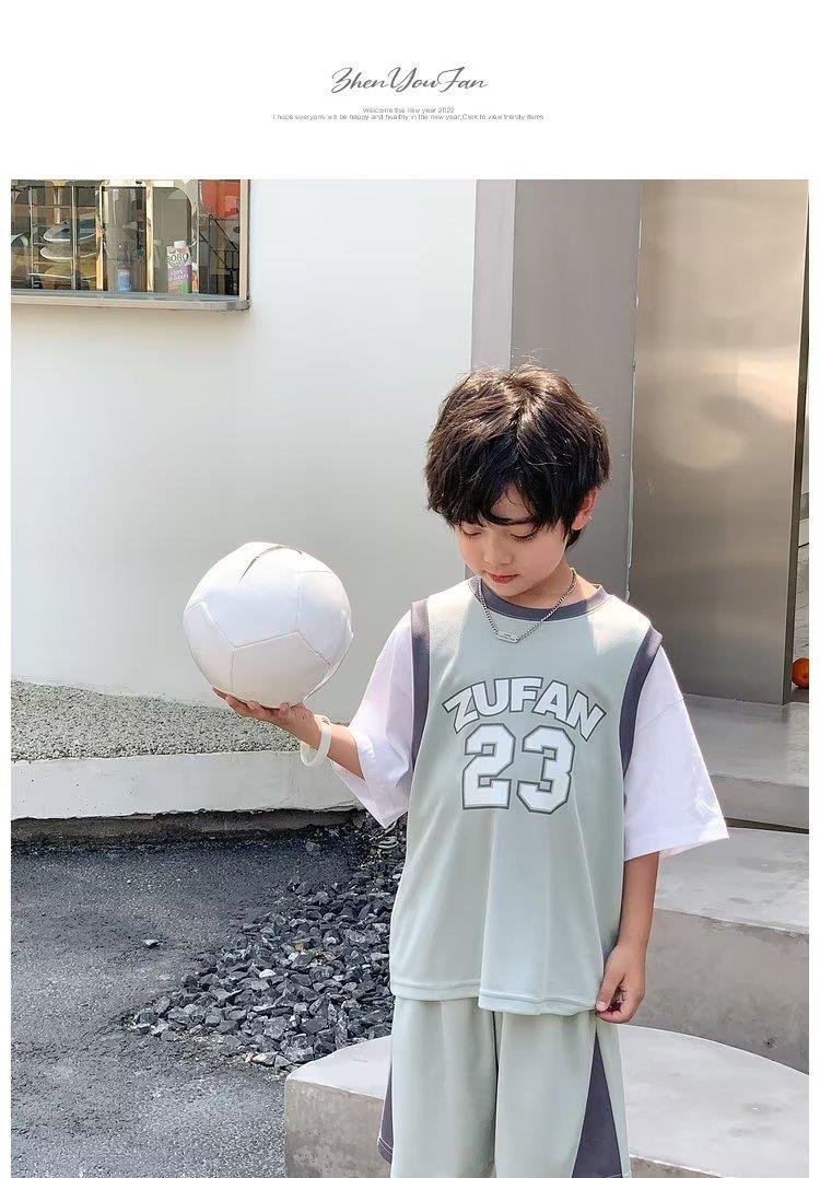 어린이 여름 의류 속건 스포츠 남아 트렌디 한 여름 얇은 남아 세트 2023 새로운 중대형 어린이 농구복스토어 가기