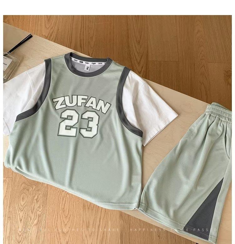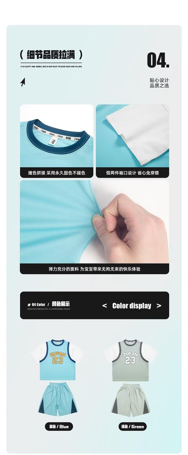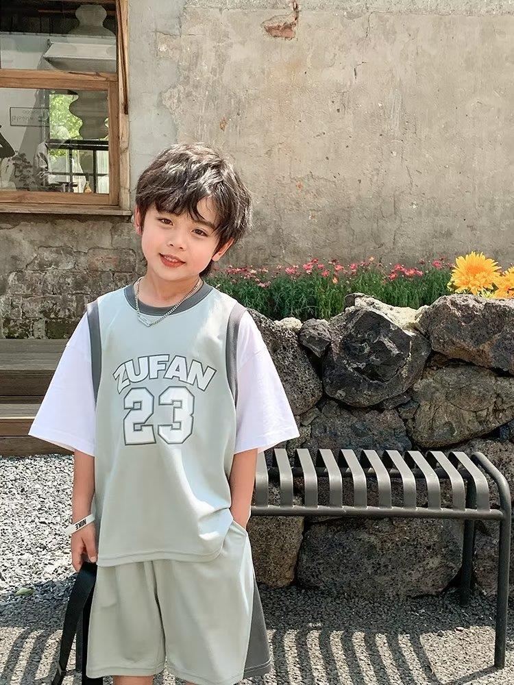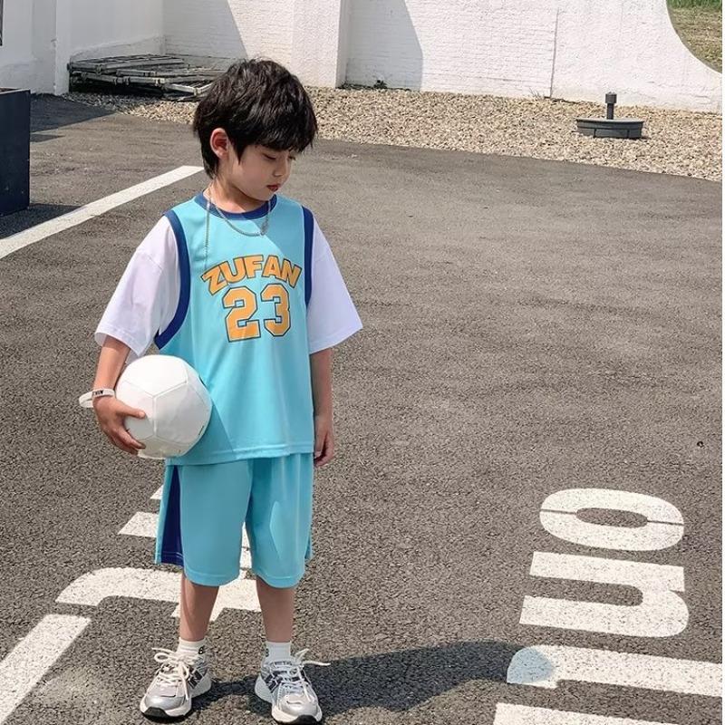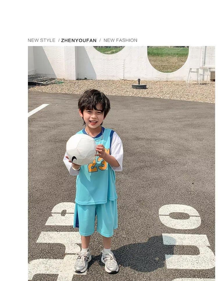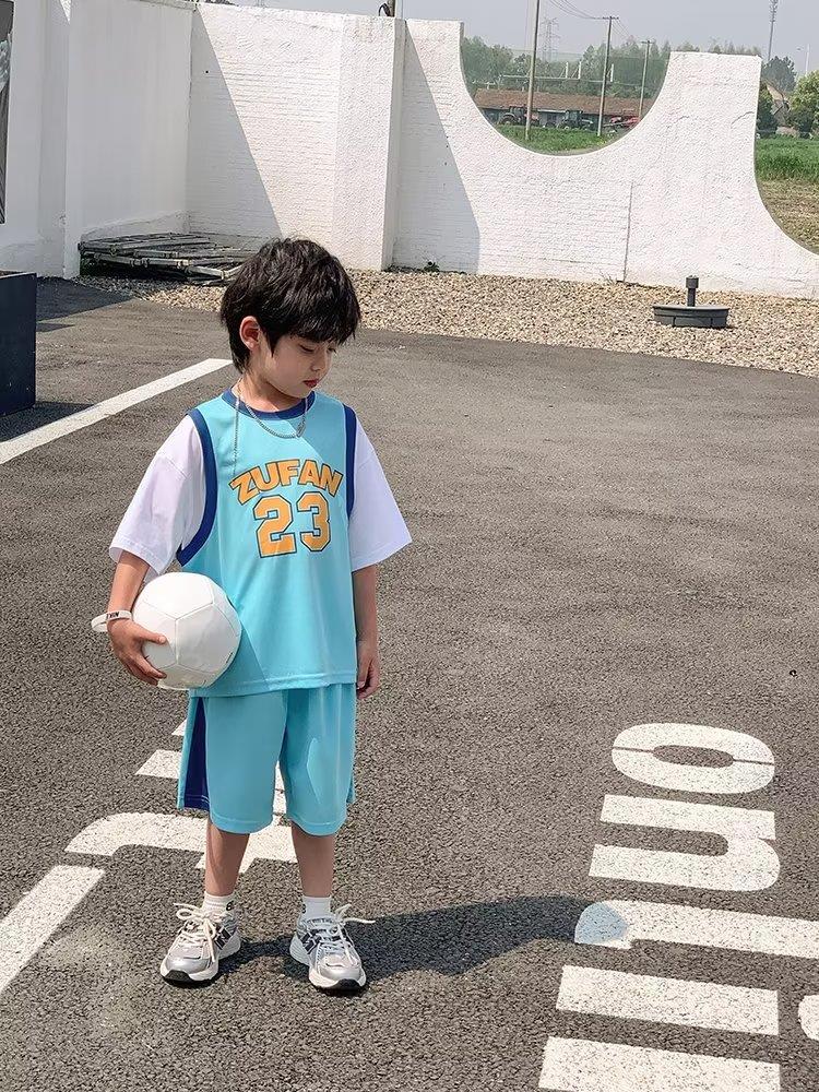 어린이 여름 의류 속건 스포츠 남아 트렌디 한 여름 얇은 남아 세트 2023 새로운 중대형 어린이 농구복스토어 가기