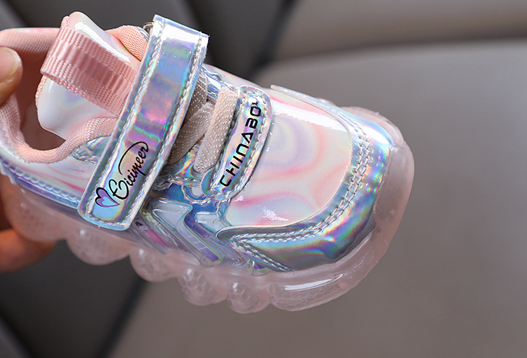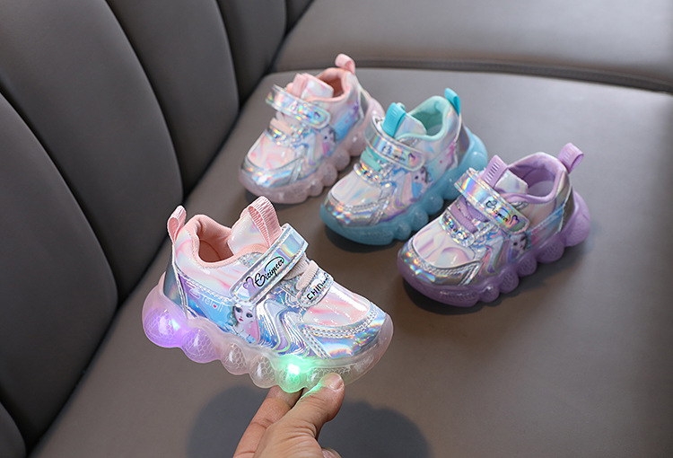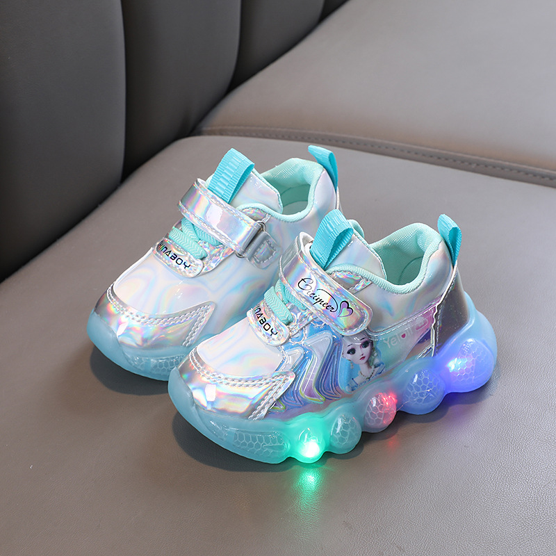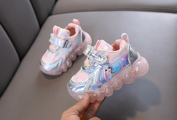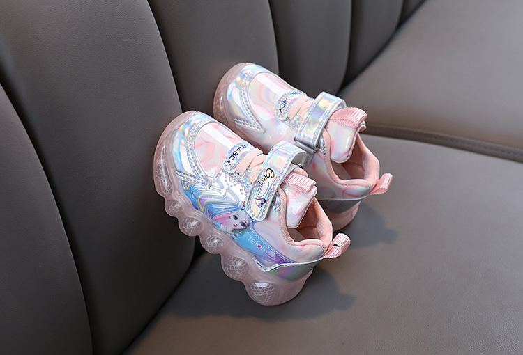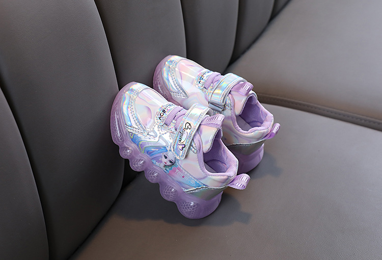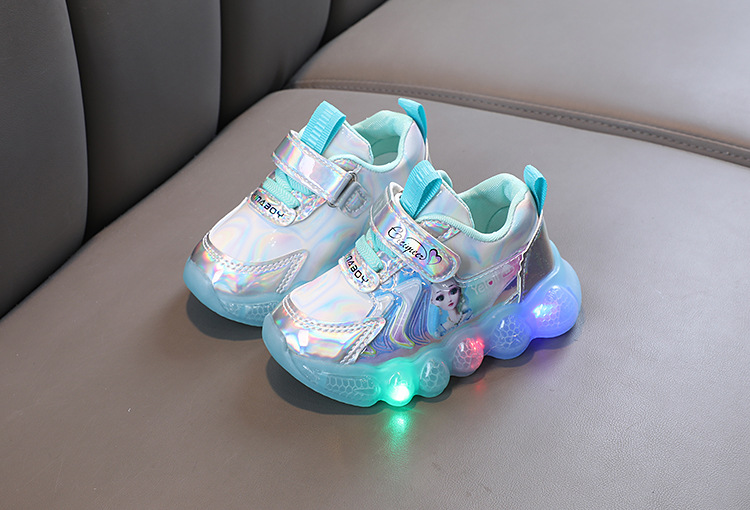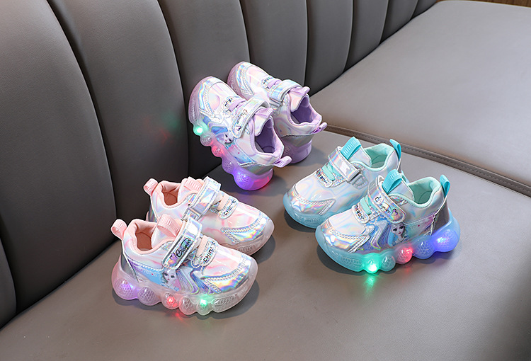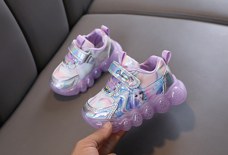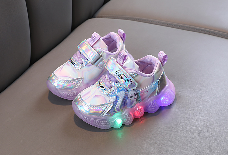 2024 봄 가을 신상 발광 운동화 여아용 만화 가죽 운동화 중소 어린이용 수출용 라이트 운동화스토어 가기