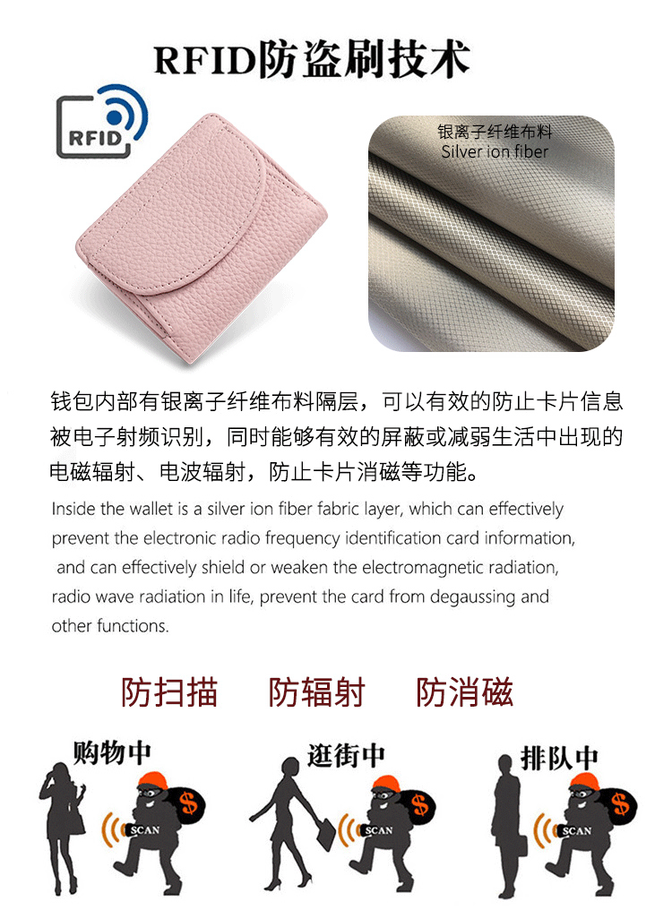 대외 무역 일본식 지갑 여성 정품 가죽 지갑 동전 지갑 RFID 도난 방지 브러시 미니 여성 작은 지갑스토어 가기