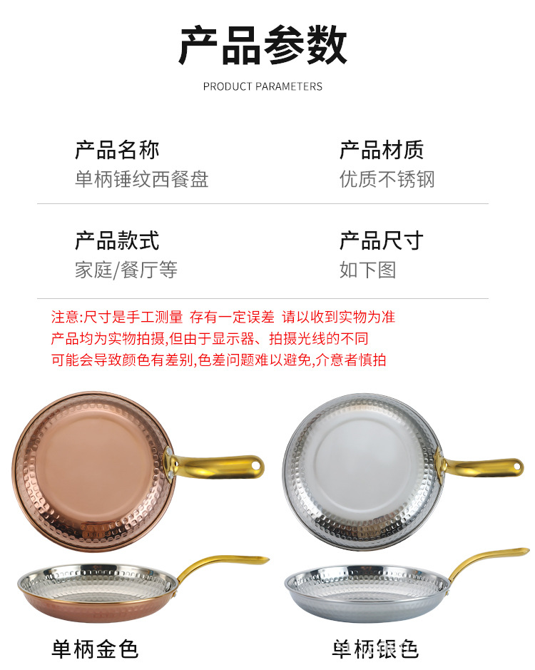 스테인레스 스틸 해머 프린트 싱글 핸들 라운드 접시 샐러드 접시 스낵 접시 상업용 싱글 핸들 스파게티 접시 랍스터 접시