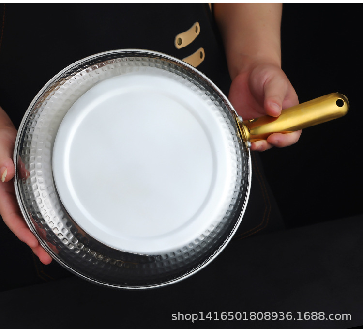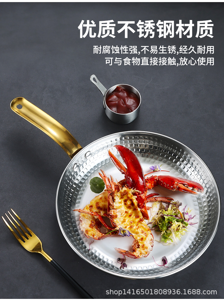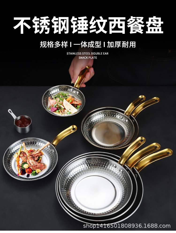 스테인레스 스틸 해머 프린트 싱글 핸들 라운드 접시 샐러드 접시 스낵 접시 상업용 싱글 핸들 스파게티 접시 랍스터 접시스토어 가기