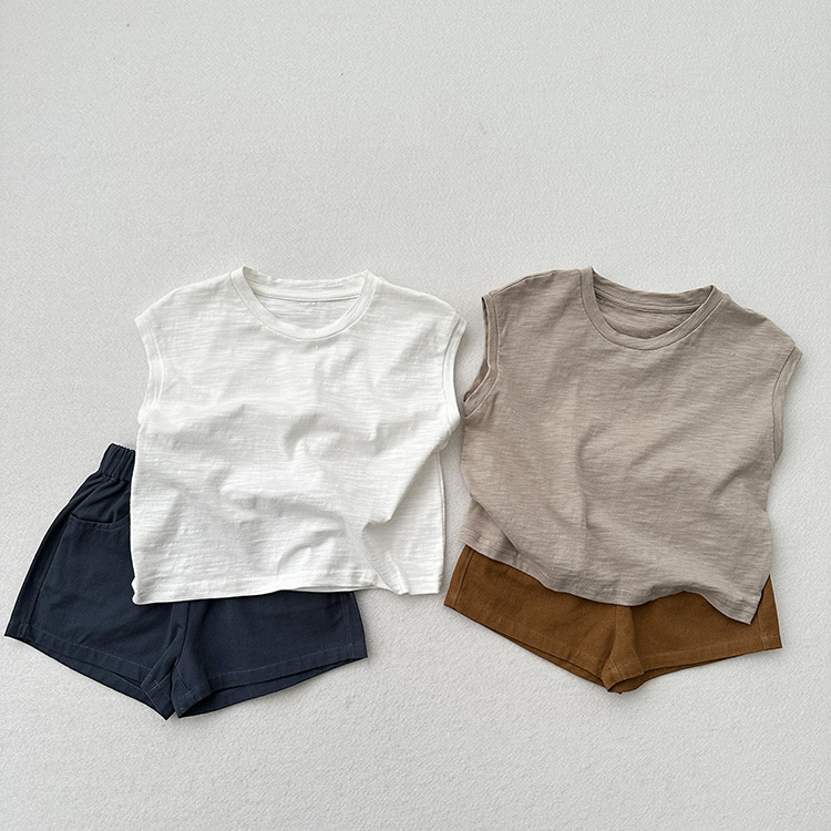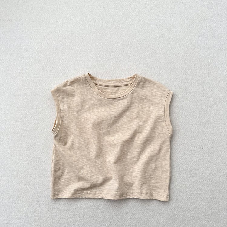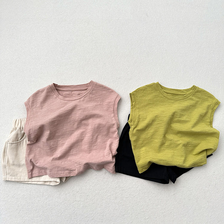 부드러운 얇은 작은 조끼 ~ 한여름 신제품 남학생과 여학생을위한 대나무 면 민소매 숄더 티셔츠 일본식 복장 서양식 탑스토어 가기