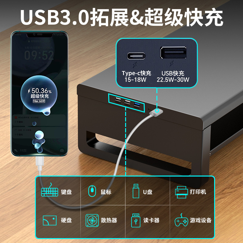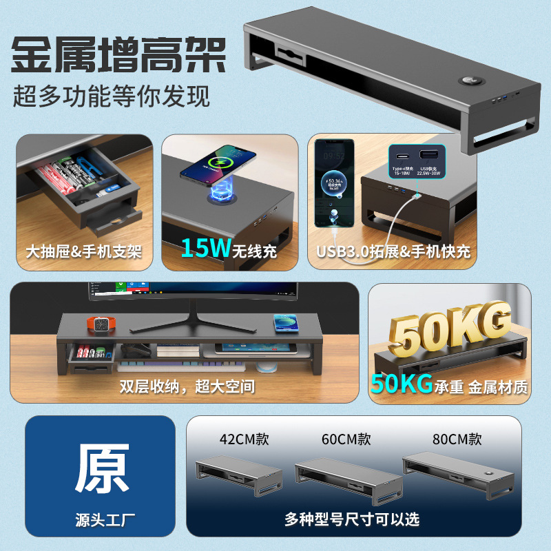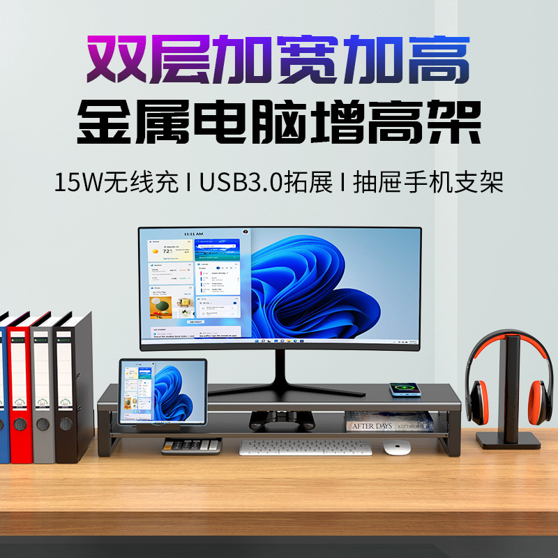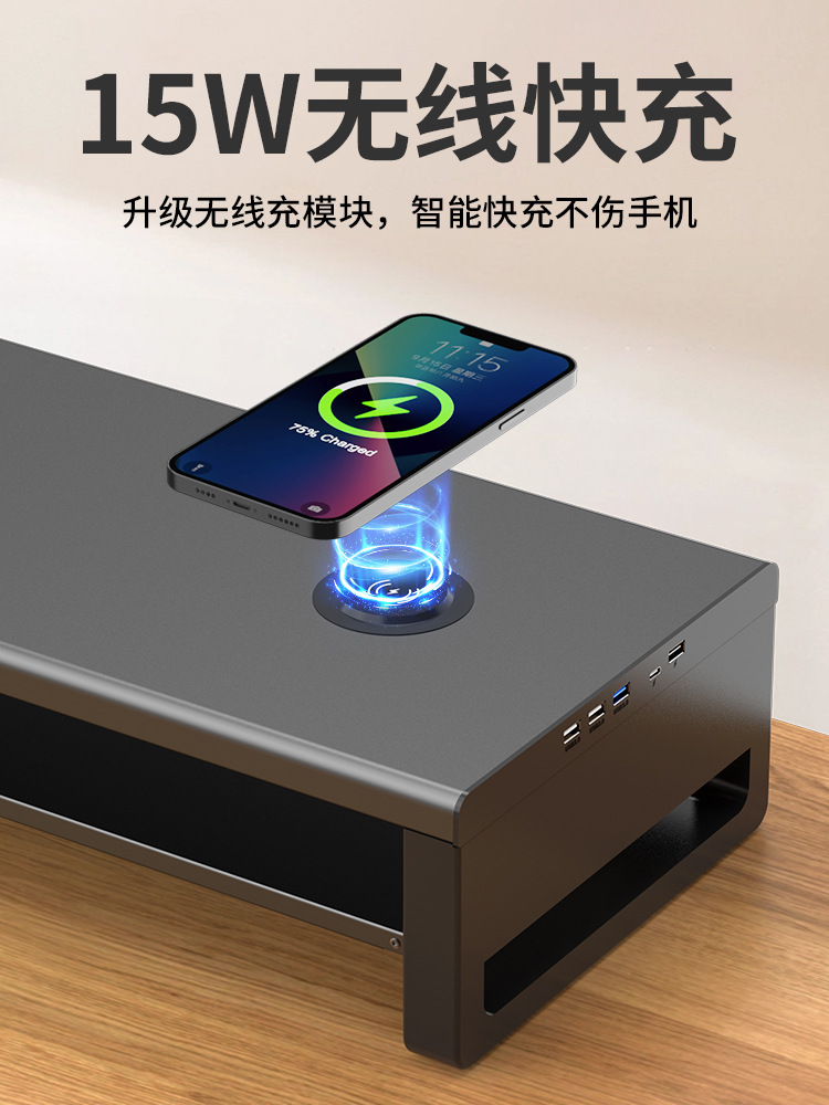 듀얼 스크린 컴퓨터 모니터 높이 스탠드 무선 충전 도킹 스테이션 데스크탑 높이 스탠드 모니터 받침대