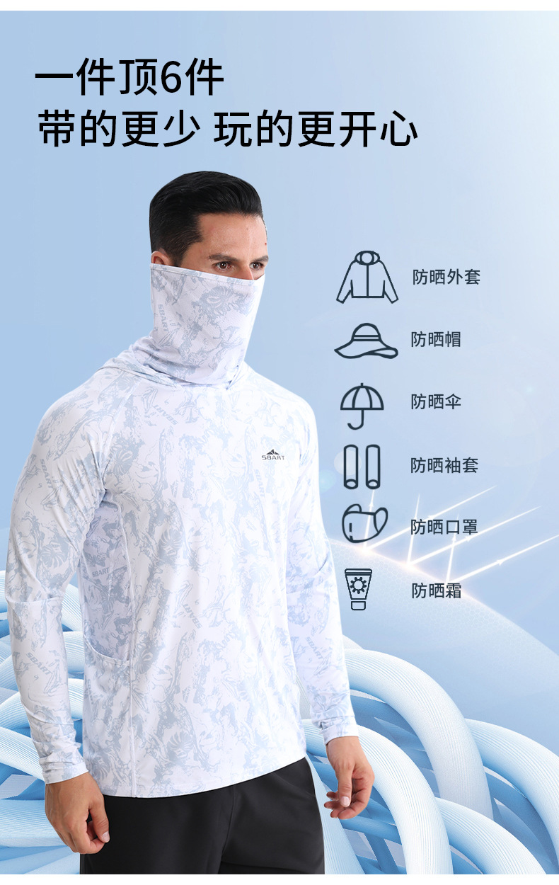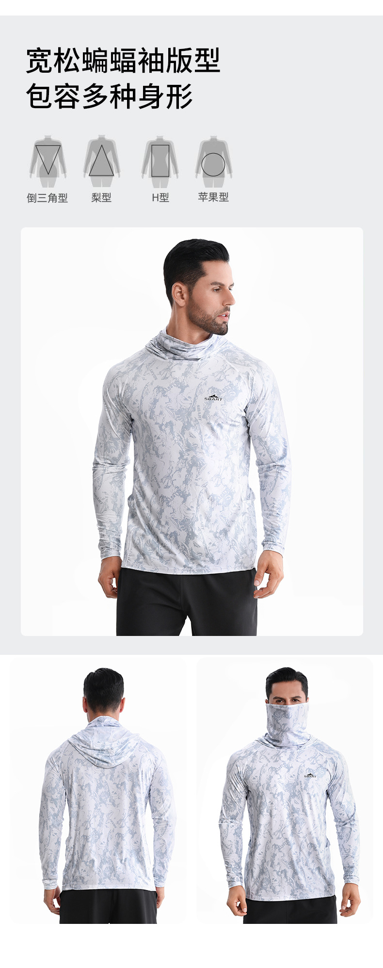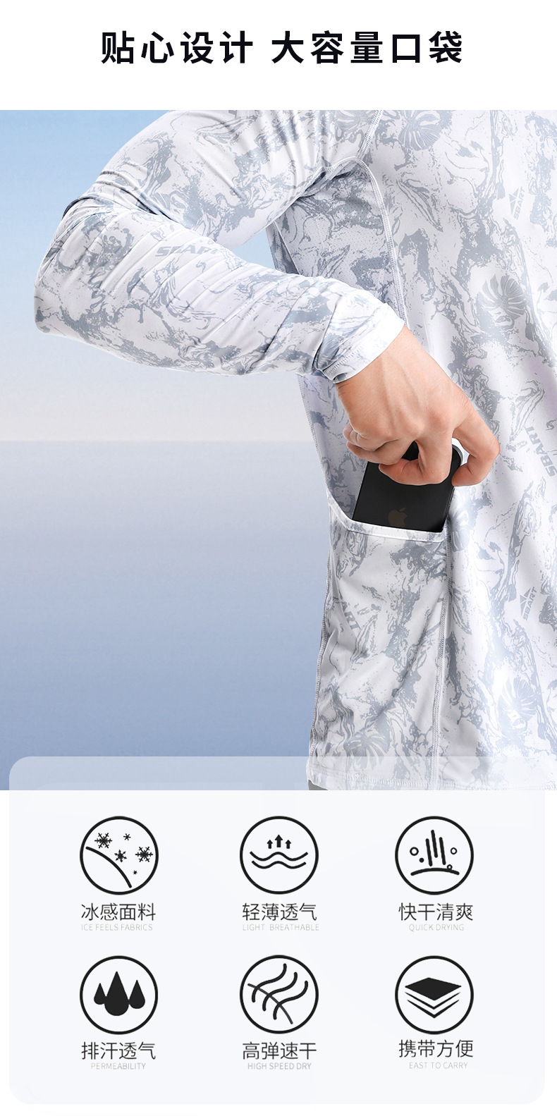 Shark Bart Xia 속건성 낚시 의류 남성용 통기성 자외선 차단 의류 남성용 아이스 실크 UPF50 + 자외선 차단 자외선 차단 의류