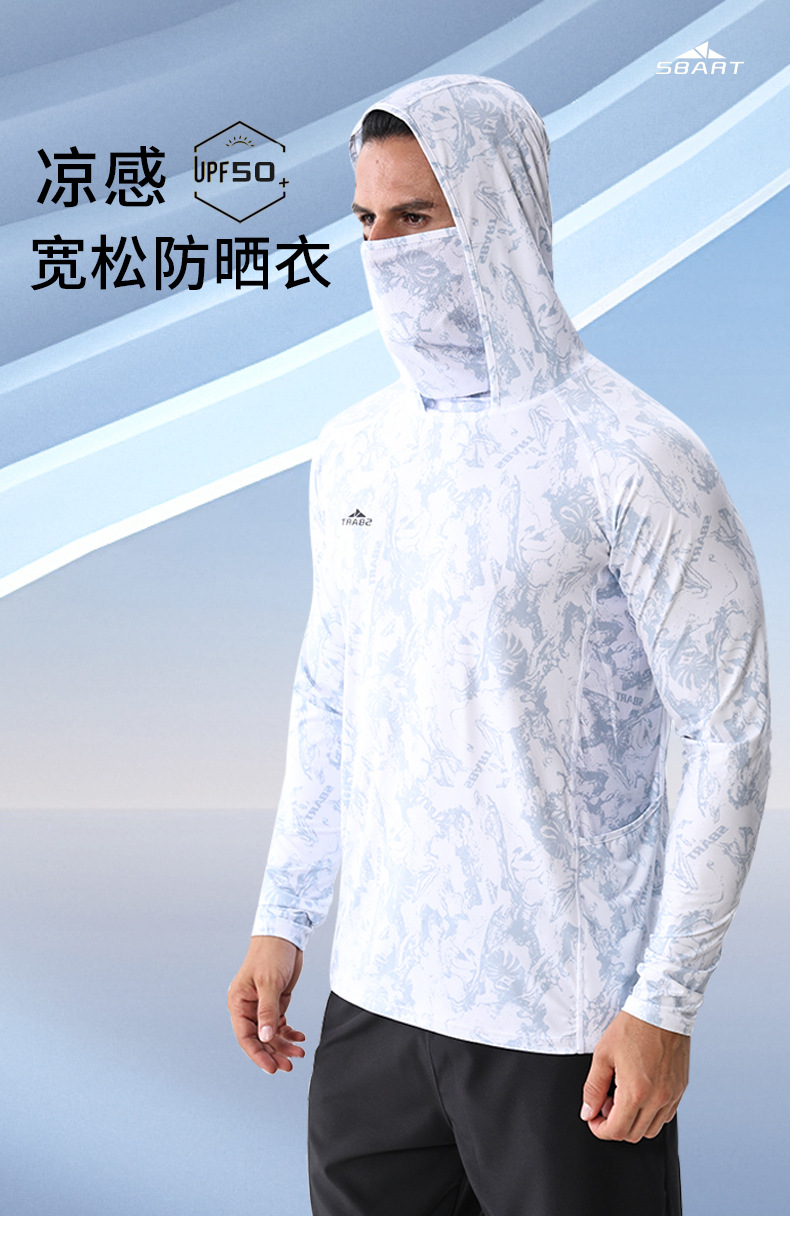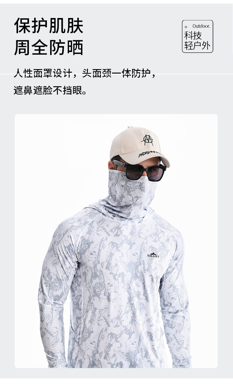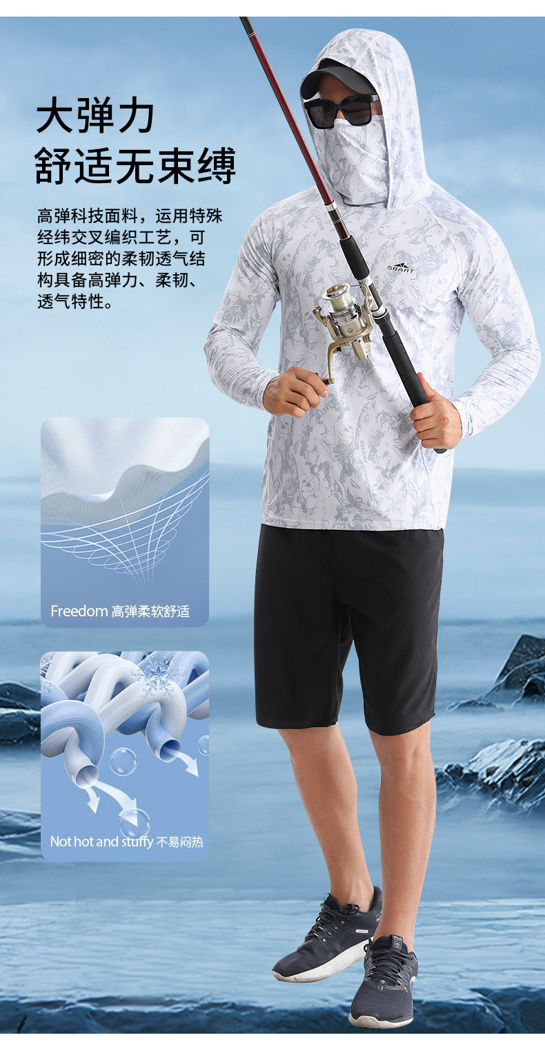Shark Bart Xia 속건성 낚시 의류 남성용 통기성 자외선 차단 의류 남성용 아이스 실크 UPF50 + 자외선 차단 자외선 차단 의류