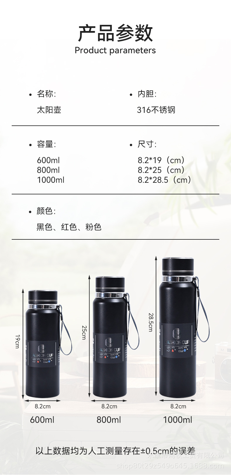 크리에이 티브 316 스테인레스 보온병 컵 대용량 등산 냄비 휴대용 슬링 스포츠 주전자 썬 컵 도매