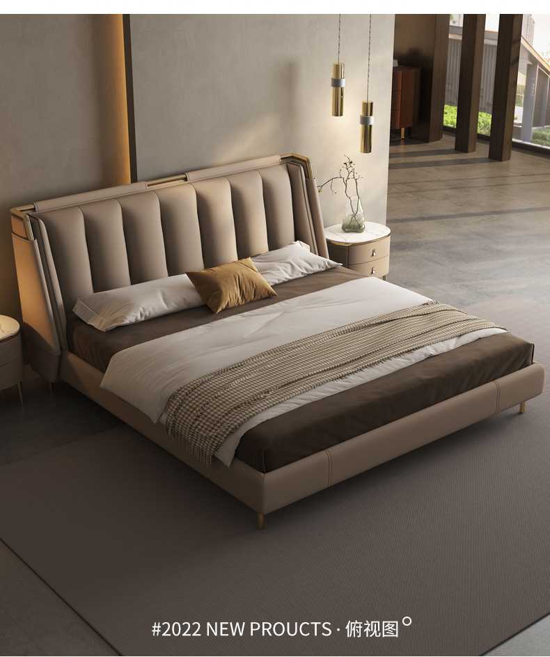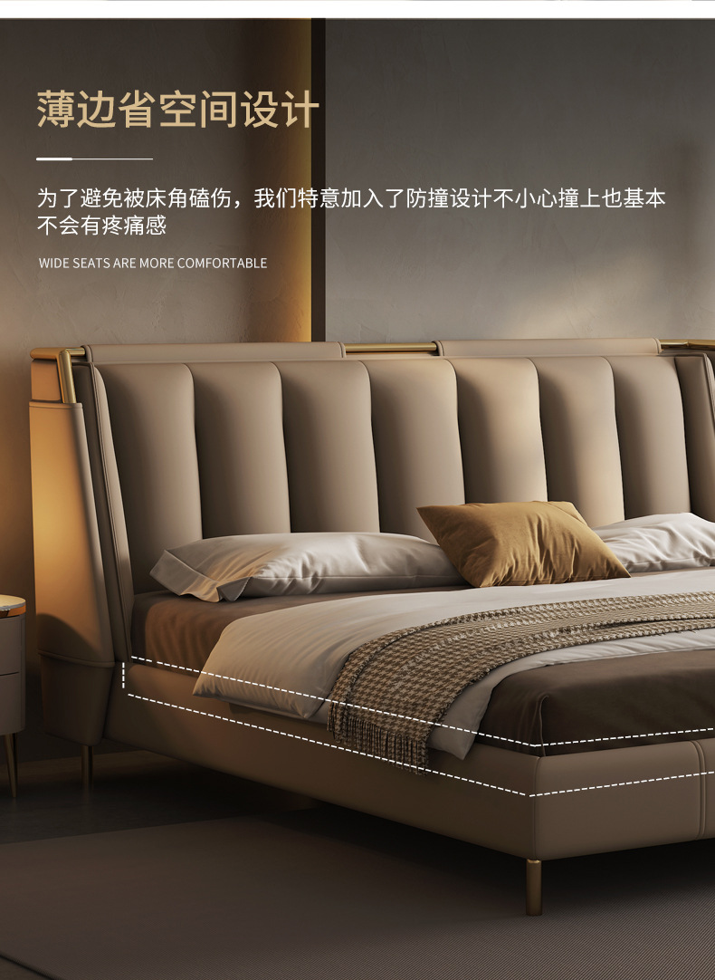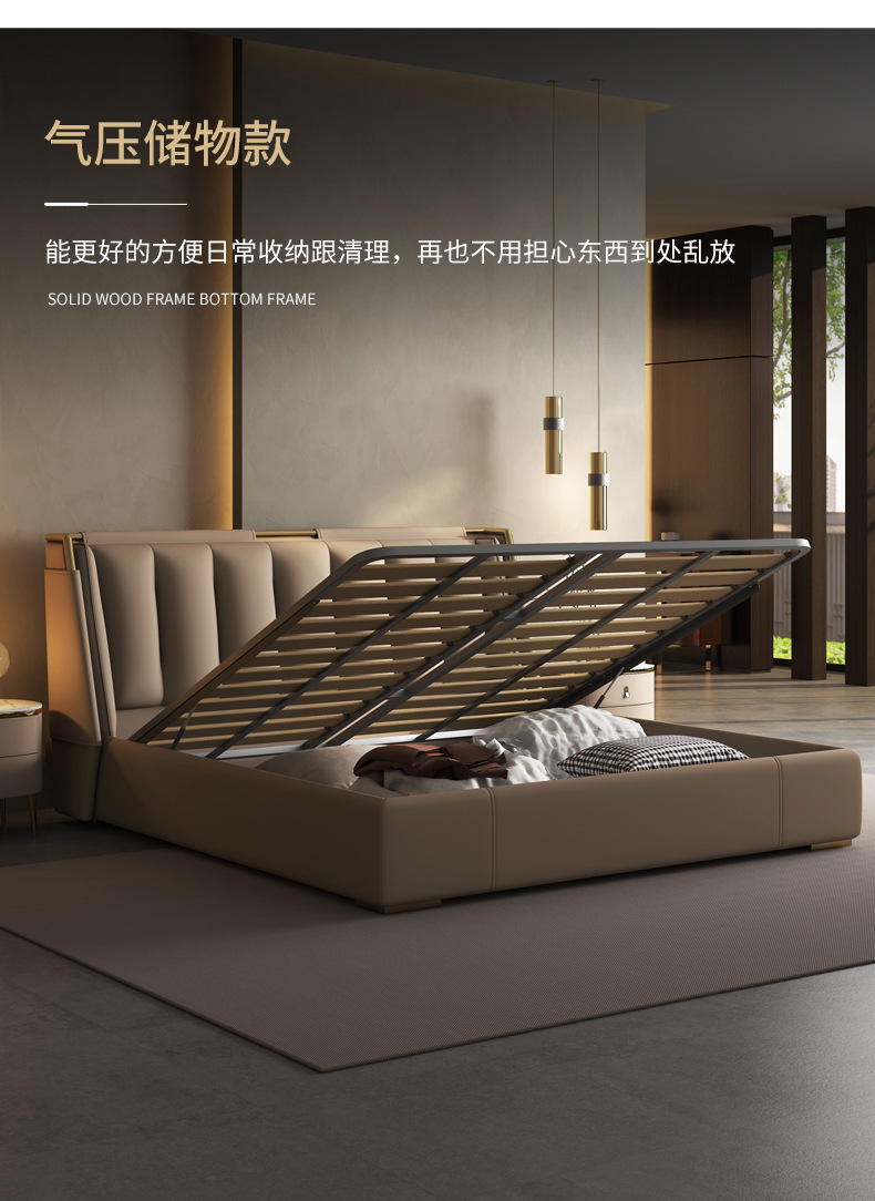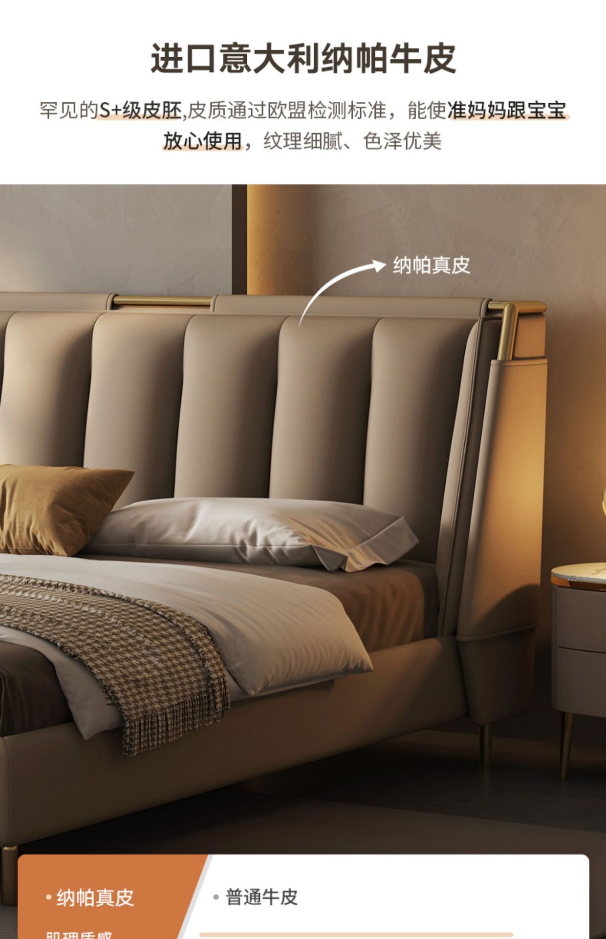 가벼운 럭셔리 가죽 침대, 마스터 침실용 더블 침대, 와비사비 크림 스타일, 소형 아파트용 1.8m 침대, 인터넷 유명 웨딩 침대, 수납 침대스토어 가기