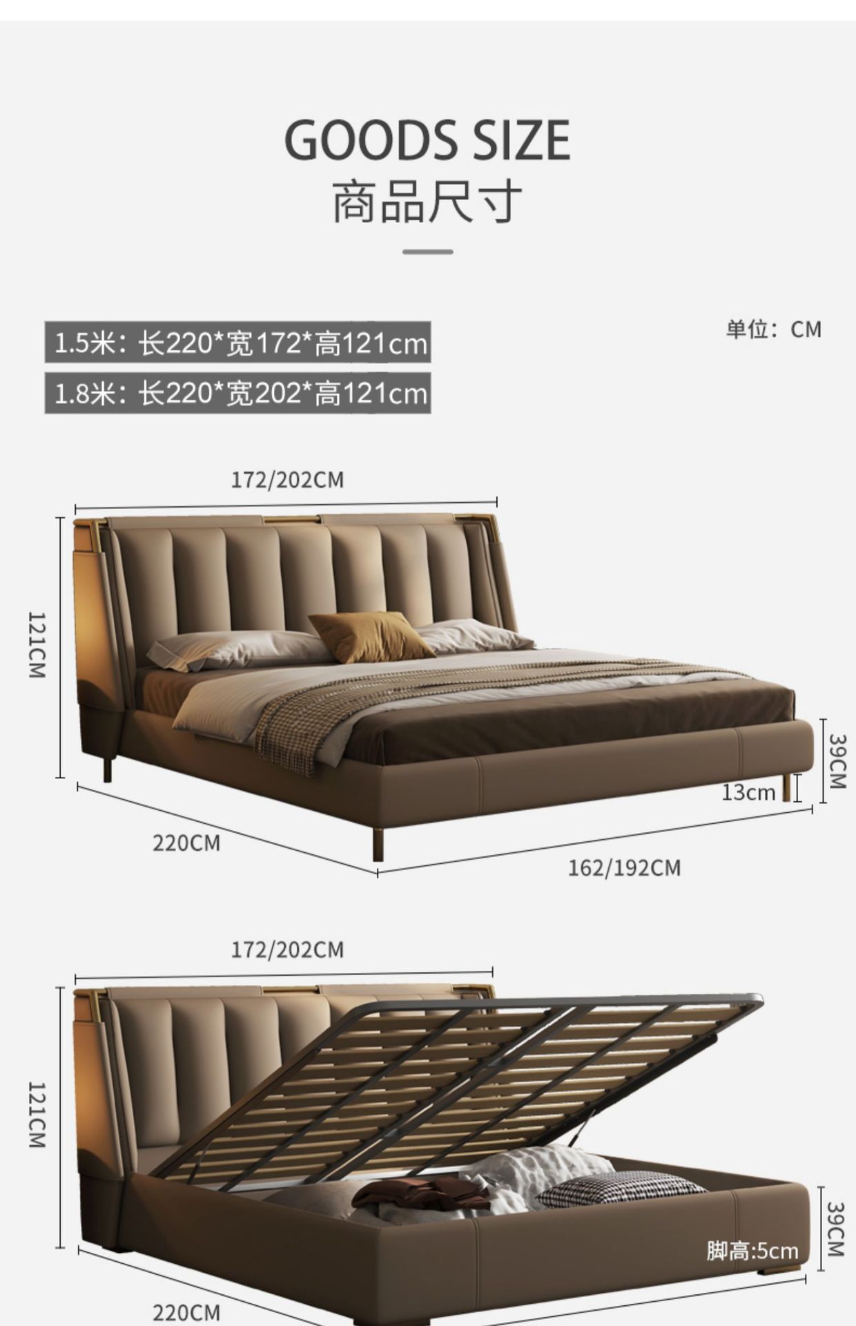• 가죽 침대 + 5 성급 라텍스 스프링 매트리스